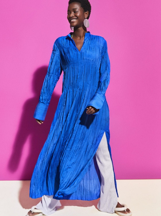 Коллекция передает беззаботную атмосферу в цветовой палитре ярко-розового и кобальтово-синего. Здесь органично сочетаются вещи крупной вязки, воздушные платья и легкие костюмы. Коллекция H&M Studio S/S20 появится в River Mall 20 февраля.