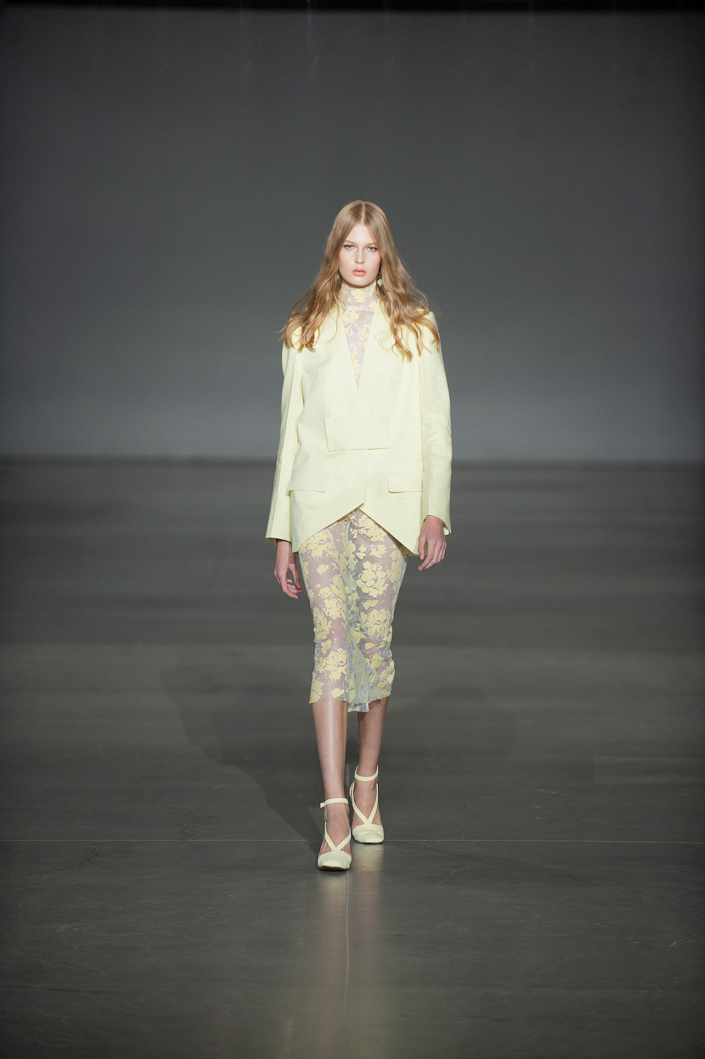 Надія на новий початок зчитується, в першу чергу, в кольоровому рішенні колекції: дизайнерка відійшла від своєї звичної чорно-білої гами, зробивши ставку на відтінки рожевого, зеленого і жовтого.