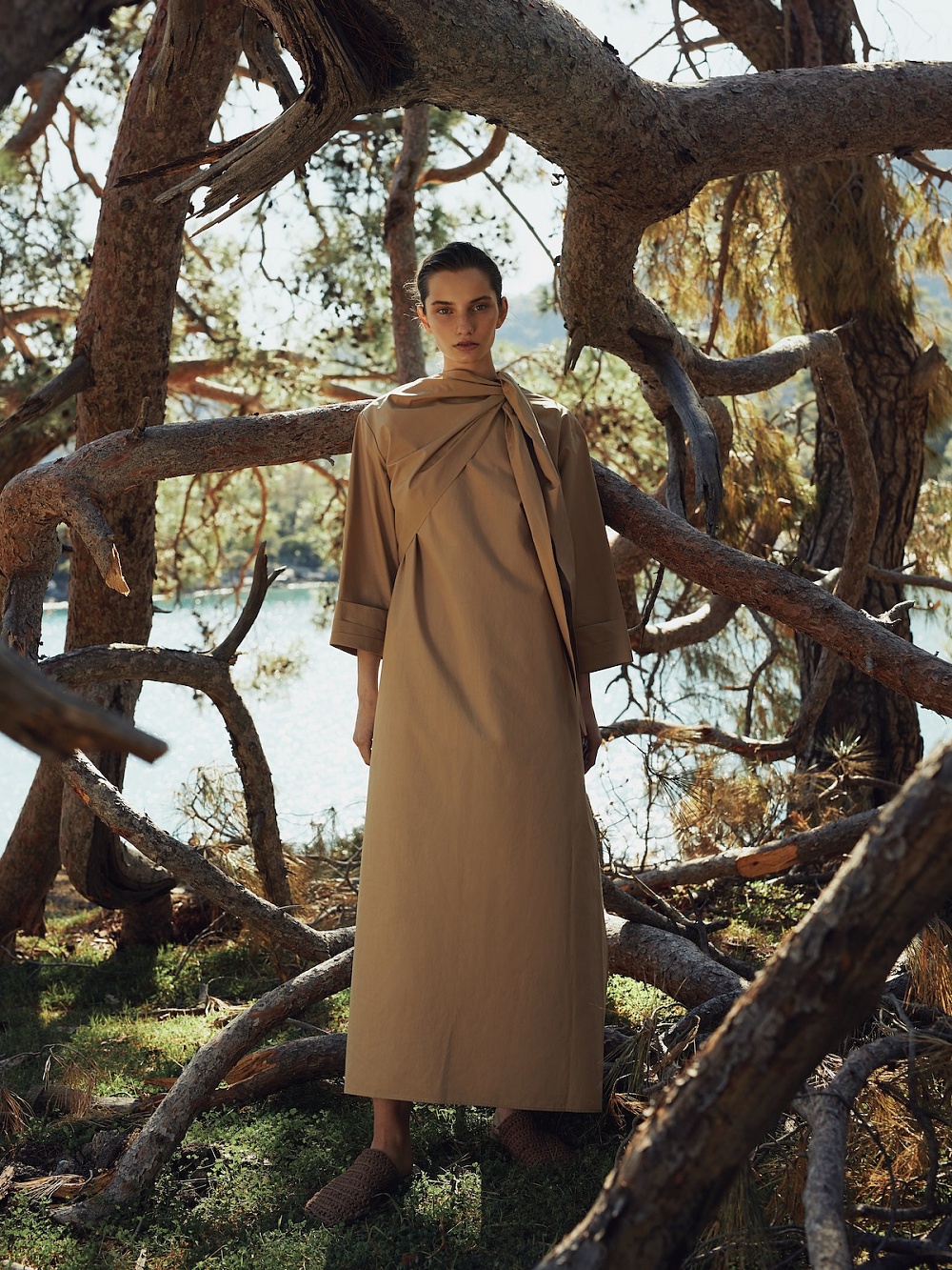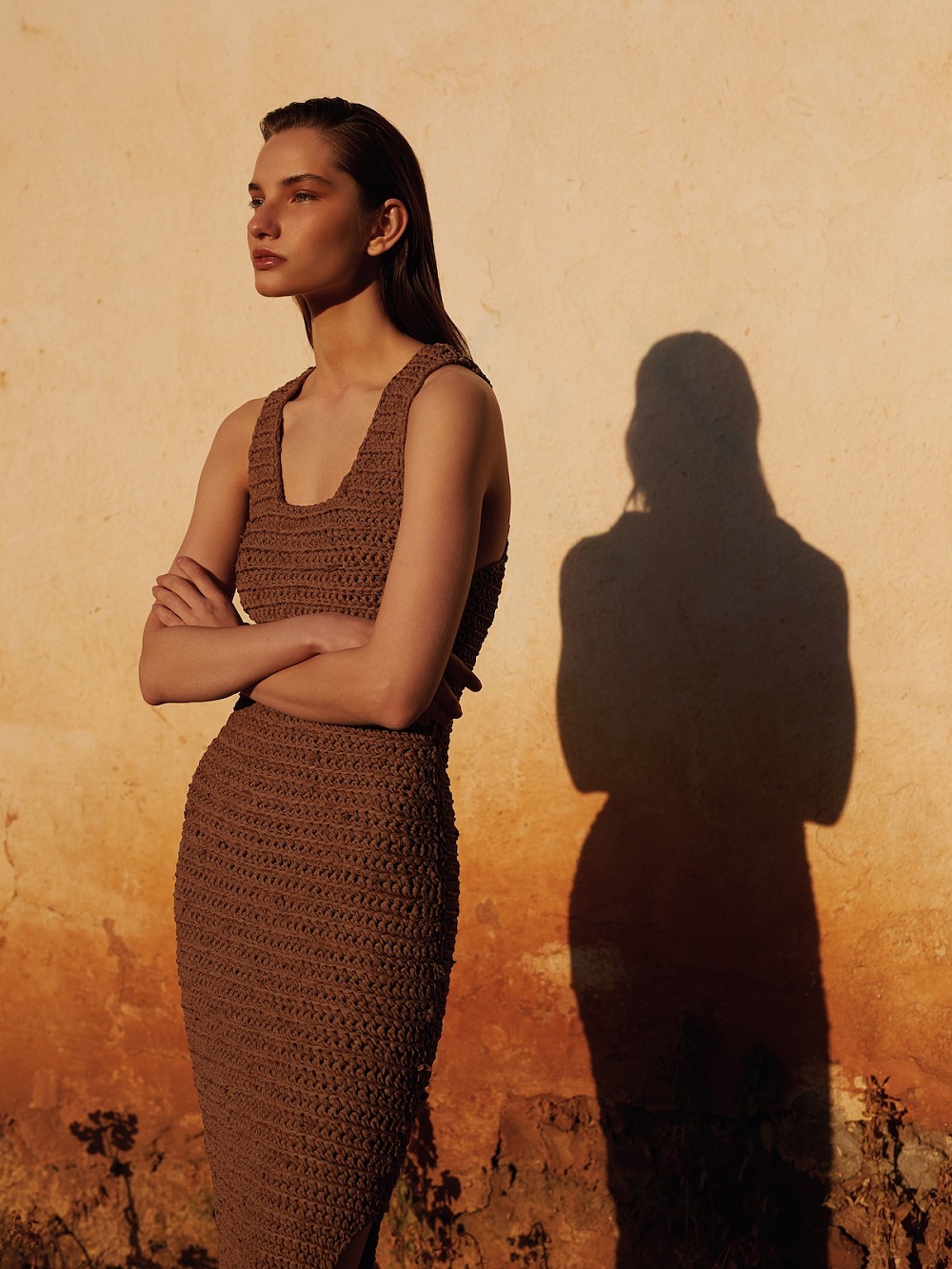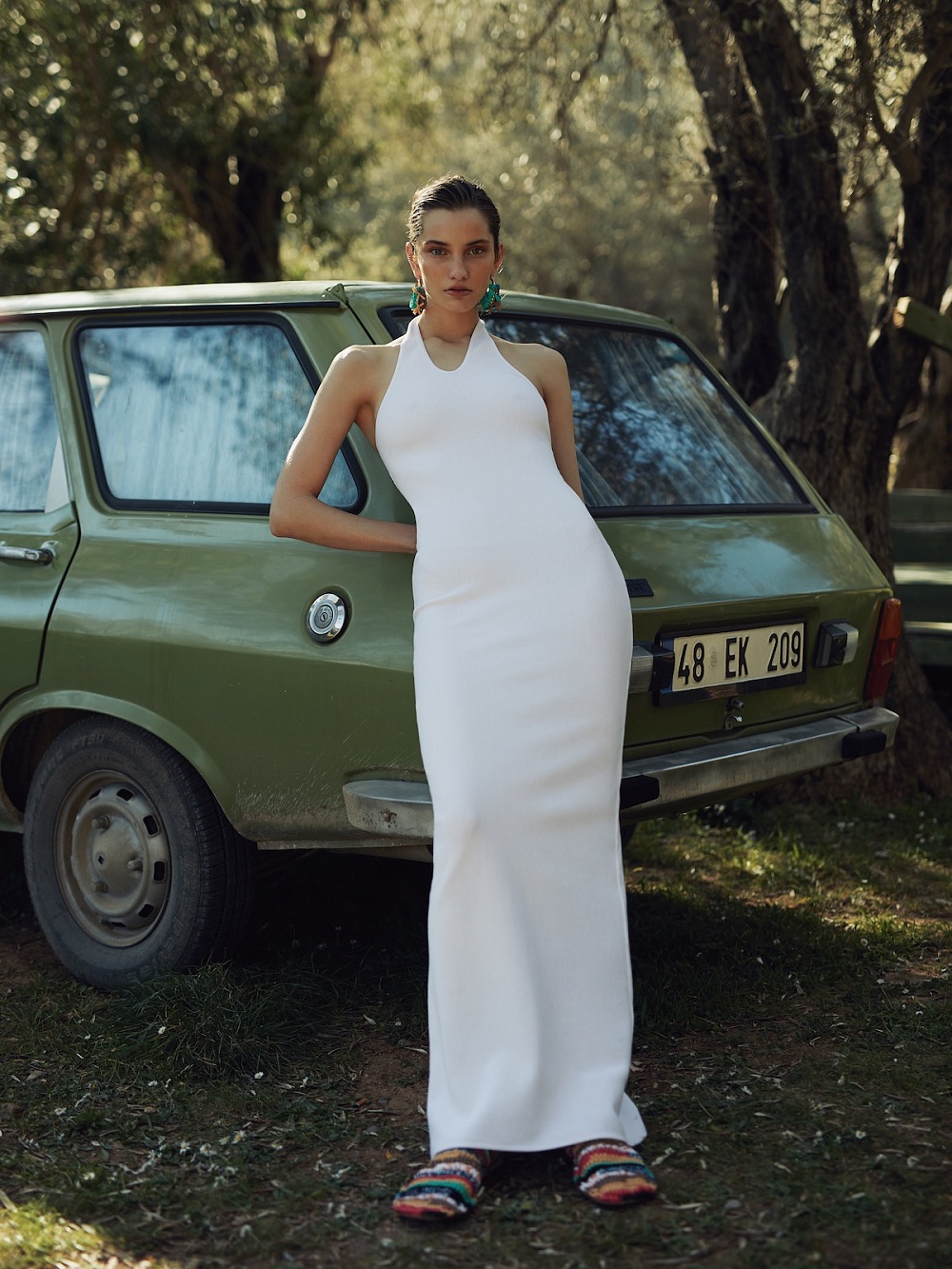 Основной материал - трикотаж, выбранный брендом для летних путешествий. Свободные брючные двойки, мягкие расслабленные силуэты платьев, джемпера из вискозы, хлопка и шелка как будто созданы для уединения и созерцания волшебных закатов. Купальники, топы и сарафаны с чувственными акцентами - обнаженным плечом или тонкими, но эффектными разрезами в районе ключицы стали уже must-have этого лета.