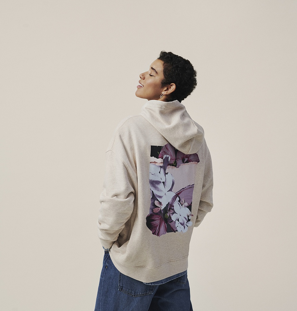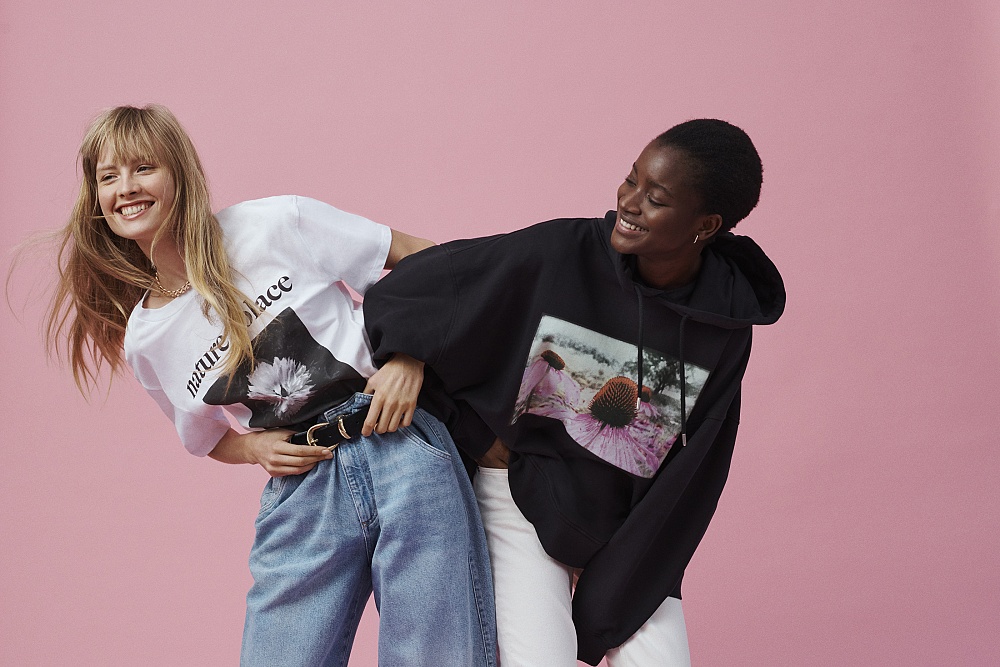 Небольшая, но продуманная капсульная коллекция построена вокруг выразительных фотографий цветов, сделанных Хеленой. Снимки напечатаны на различных футболках, толстовках и худи.