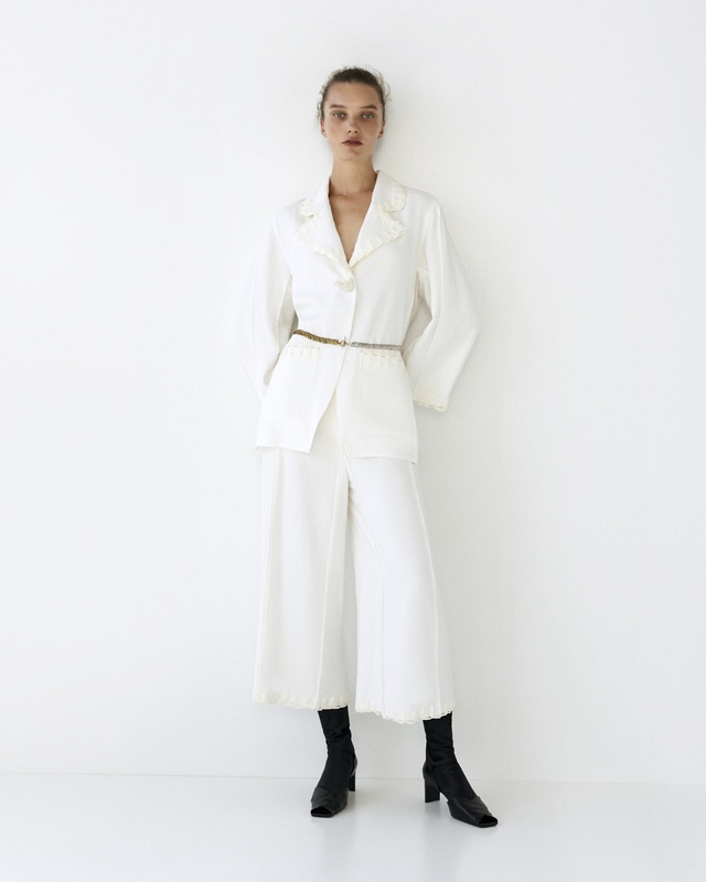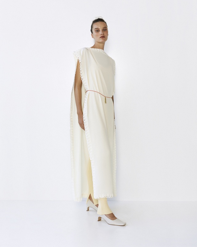 Коллекция Bevza SS 2021 включает в себя одни из самых древних и увлекательных аспектов украинской истории, исследуя при этом могущественную святость женщины. Глубокое исследование дизайнера Светланы Бевзы включает в себя изучение Триполья - древней культуры, которая существовала на территории современной Украины. Языческая цивилизация обожествляла женщин, центральную фигуру их существования, поклонялась женской энергии и материнским инстинктам, даже молилась статуям женской формы. Есть и другие исторические украинские мотивы, такие как колоски пшеницы – символ, присутствующий на протяжении всей предыдущей летней коллекции. И глубокая история украинской керамики. Оба символы вплетены в характерный минимализм, который является синонимом Bevza.