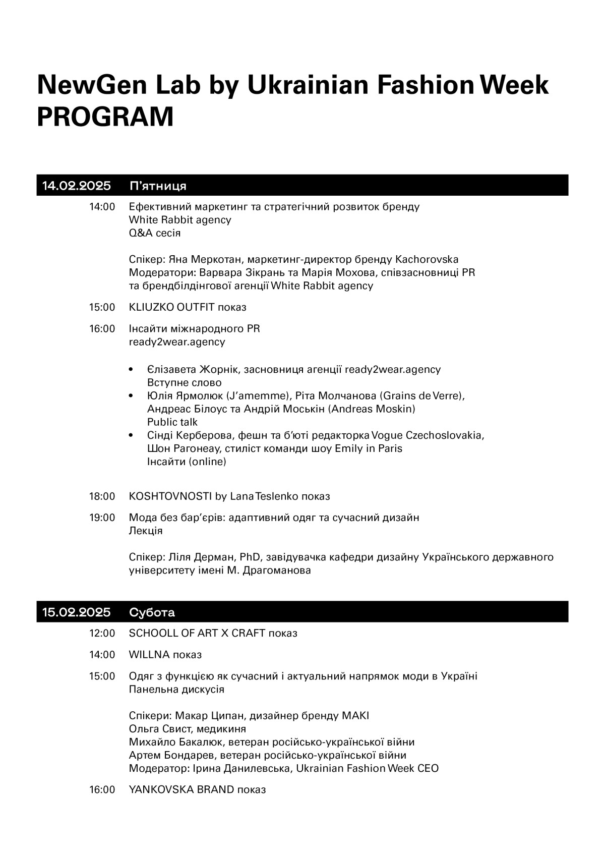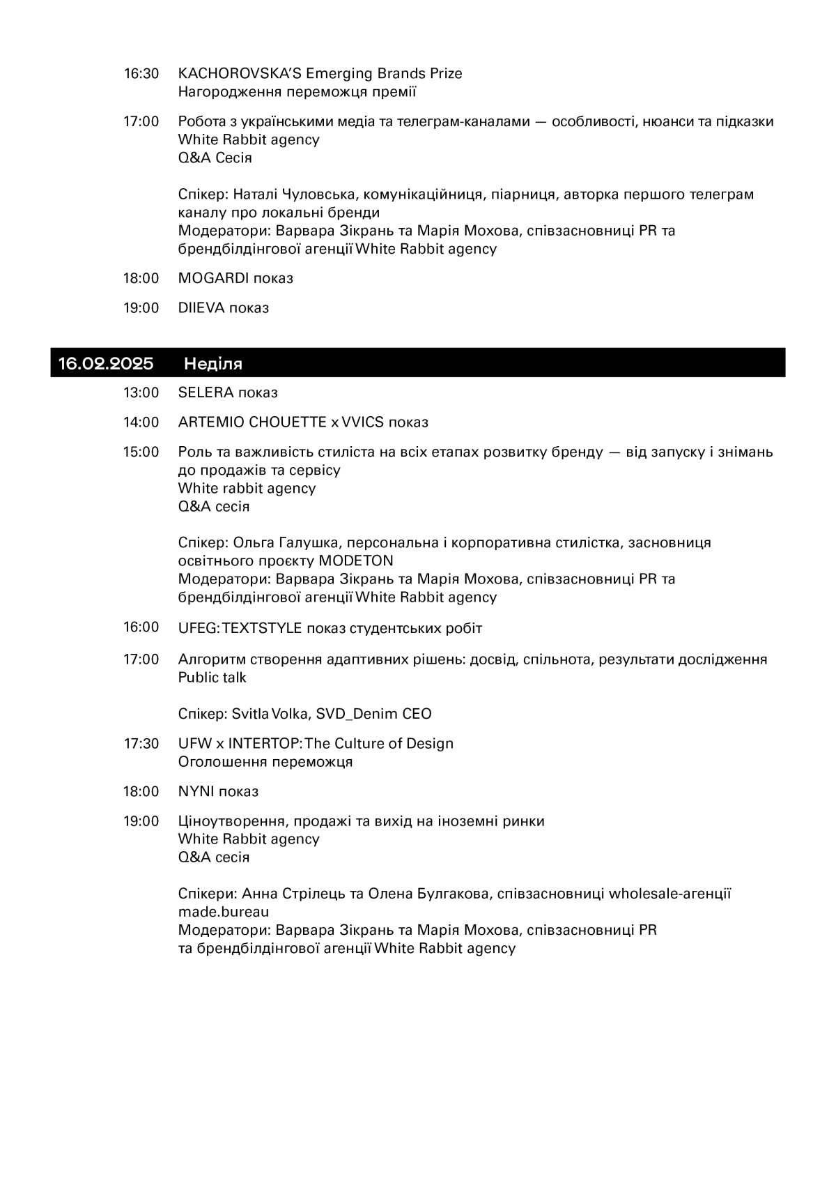 Q&A сесії від White Rabbit Agency — серія інтерактивних дискусій від провідних експертів fashion-індустрії, де запрошені спікери поділяться практичними порадами з маркетингу, стилізації, PR та виходу на міжнародні ринки.