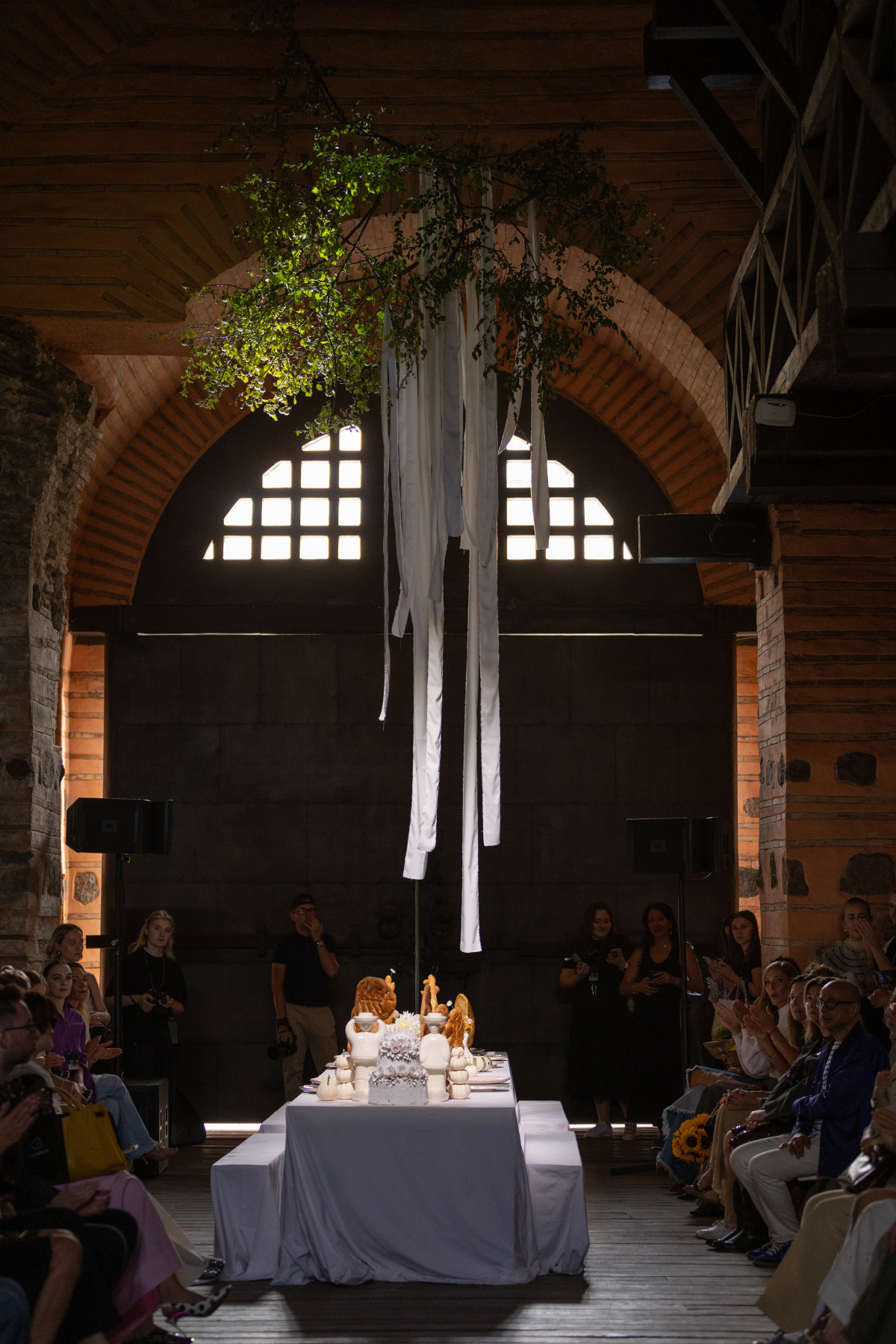 Показ колекції був побудований як театралізоване дійство, що поєднало в собі елементи перформансу та дефіле. Глядачі не лише споглядали демонстрацію одягу, але й занурювалися у символічний простір весільної обрядовості, де кожна деталь, від музичного супроводу до декорацій, розкриває нові грані давніх ритуалів.