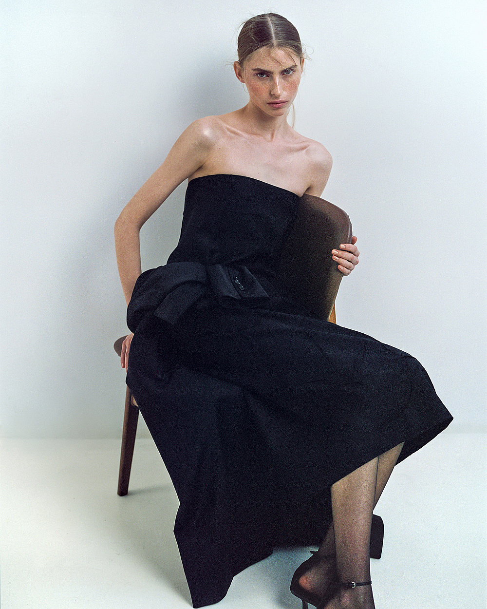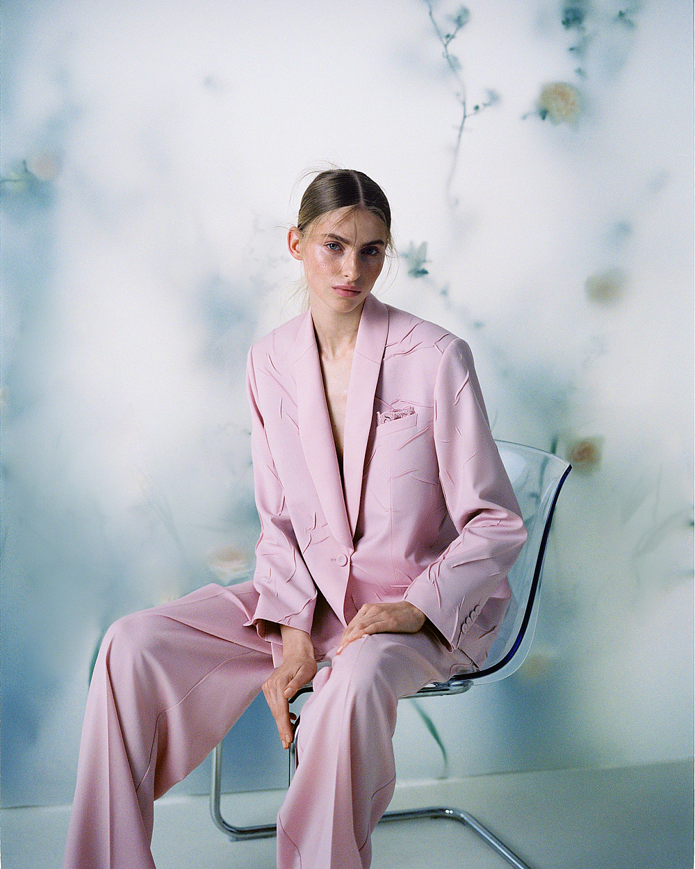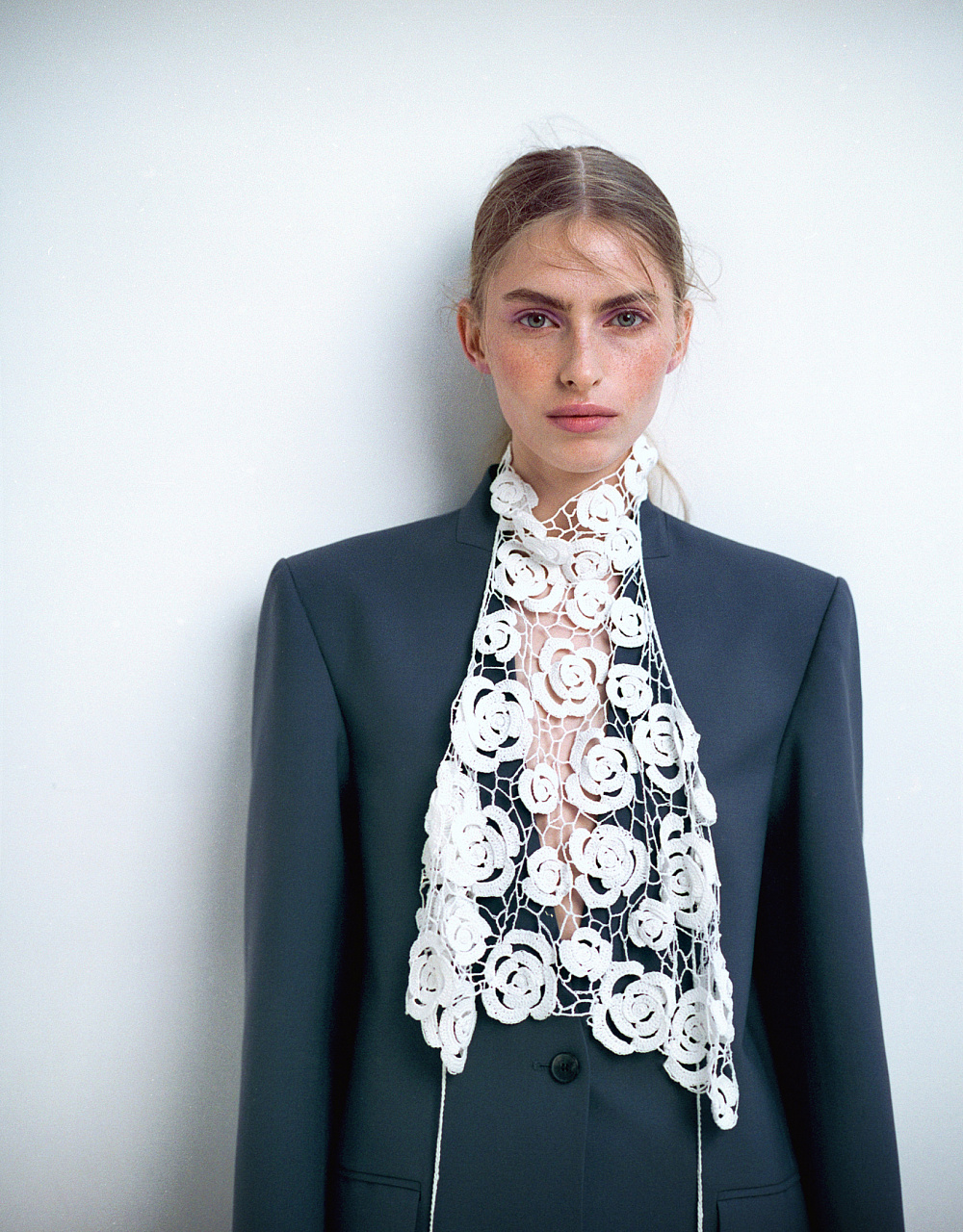 «З неї все почалося. Завдяки використанню дуже тонкої нитки плетіння має вигляд мережива й додає колекції, що включає і брючні костюми, і силуетні сукні, і мінімалістичні топи, легкості та невагомості».