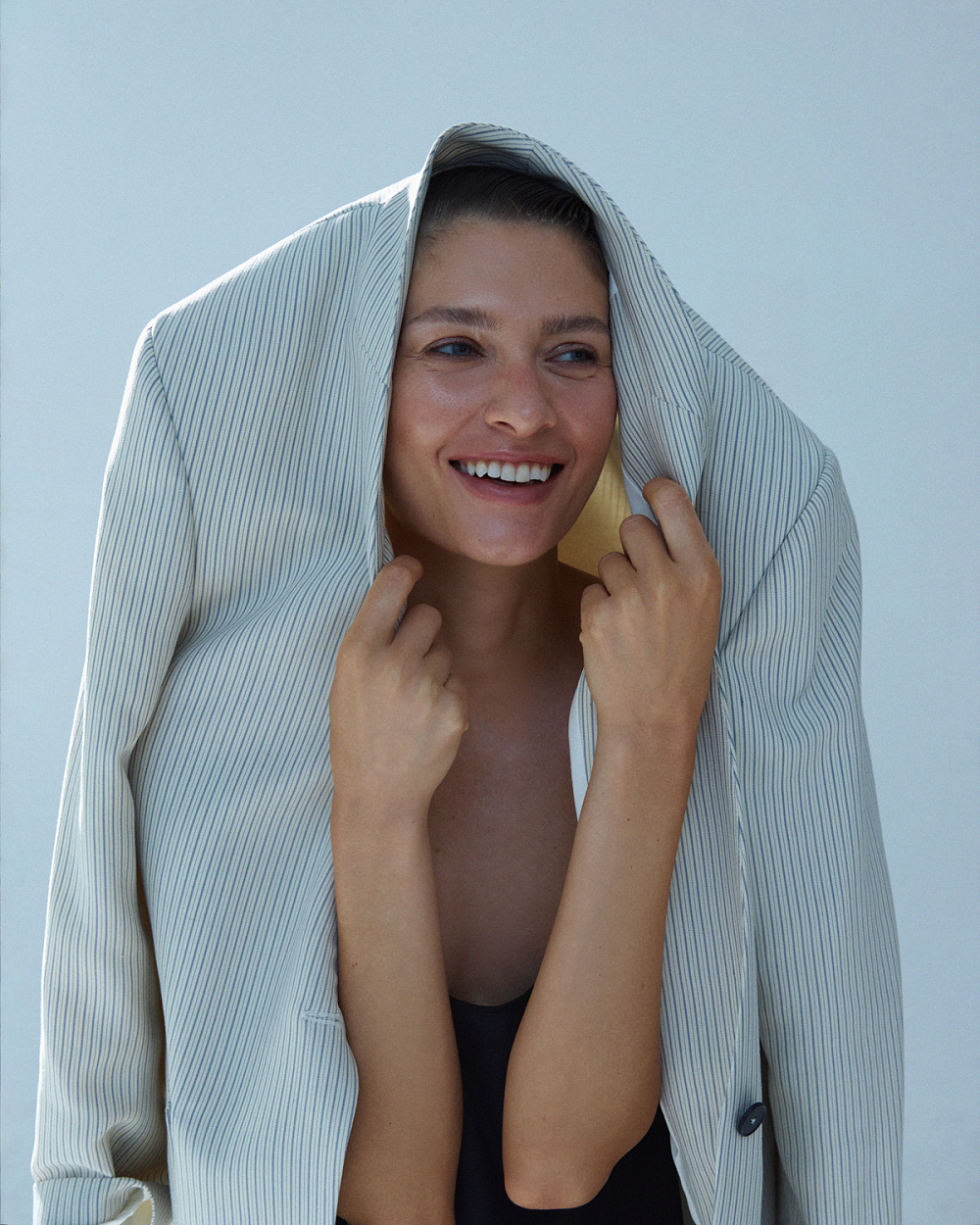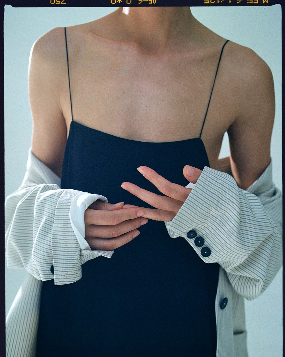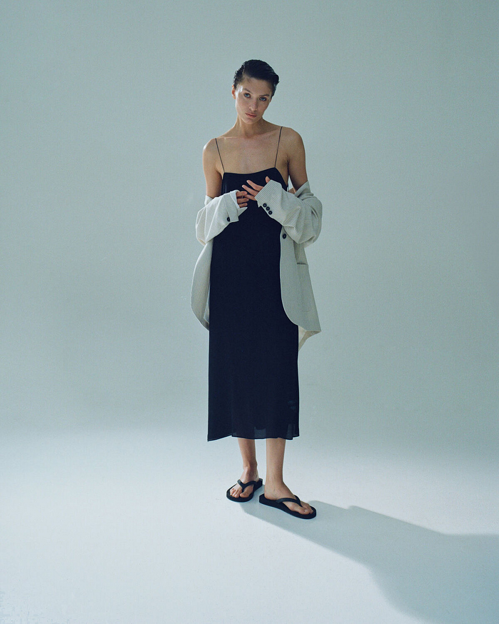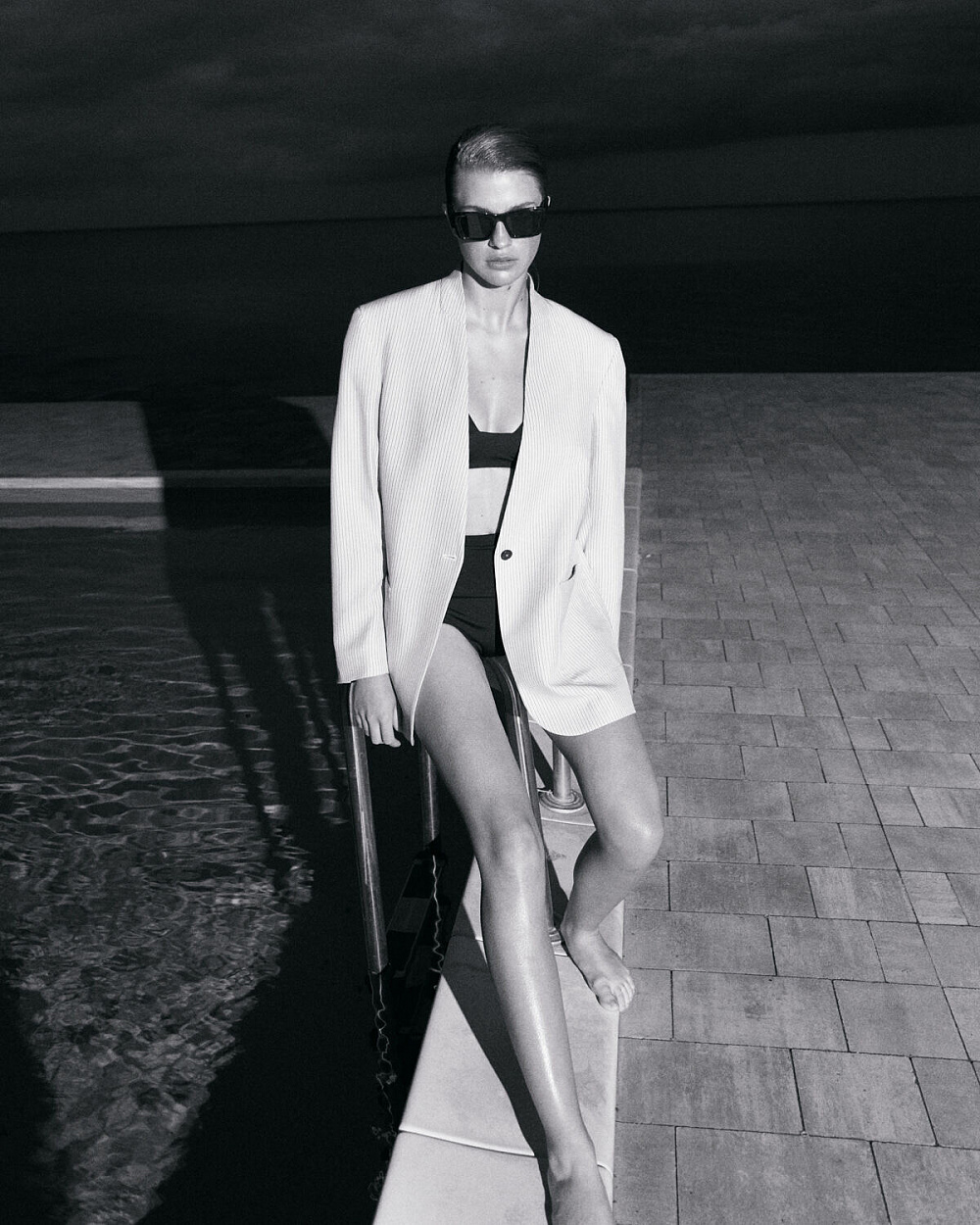 «Бренд INLYLAND у 2019 році якраз починався з резорт-історії, і мені дуже приємно, що клієнти й досі надсилають нам фотографії, запитуючи про купальники, топи або шовкові спідниці з дебютної капсули», — розповідає Інна Грицик, яка оновила лінійку тих самих купальників з геометричним вирізом і додала до них ще кілька позицій — білу спідницю міді, об’ємну чорну сорочку з довгим рукавом та блакитну з коротким рукавом, короткі шорти та жакет у смужку.