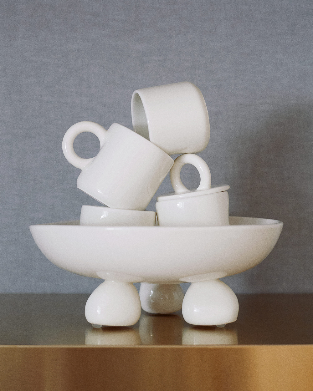 Надихаючись лініями жіночого тіла та концептом бездоганних природних форм, керамістка Sofika створила три різновиди ваз у пластичних, мінливих обрисах. Переосмислені елементи картини Alone or Not та скетчу «Мир миром пироги з сиром» художниці Ірини Максименко оздобили декоративне покривало, серветки та скатертину з вареної бавовни. Крім того, в колекції доступні футуристичні, лаконічні лампи з унікальної екофрендлі суміші натуральних компонентів від бренду Clayp.