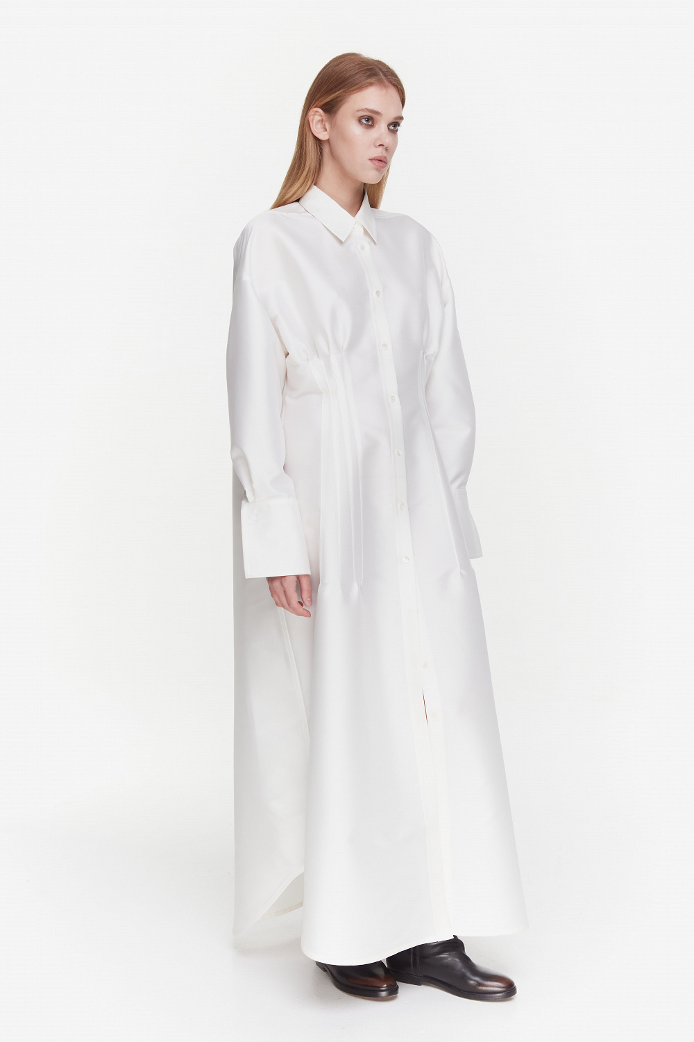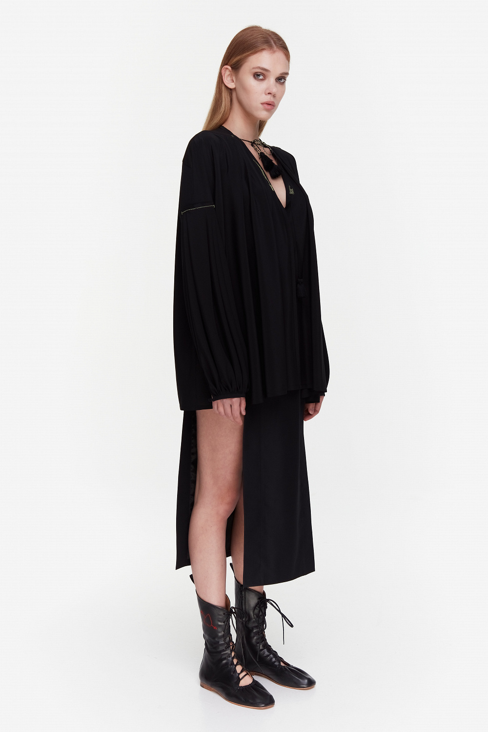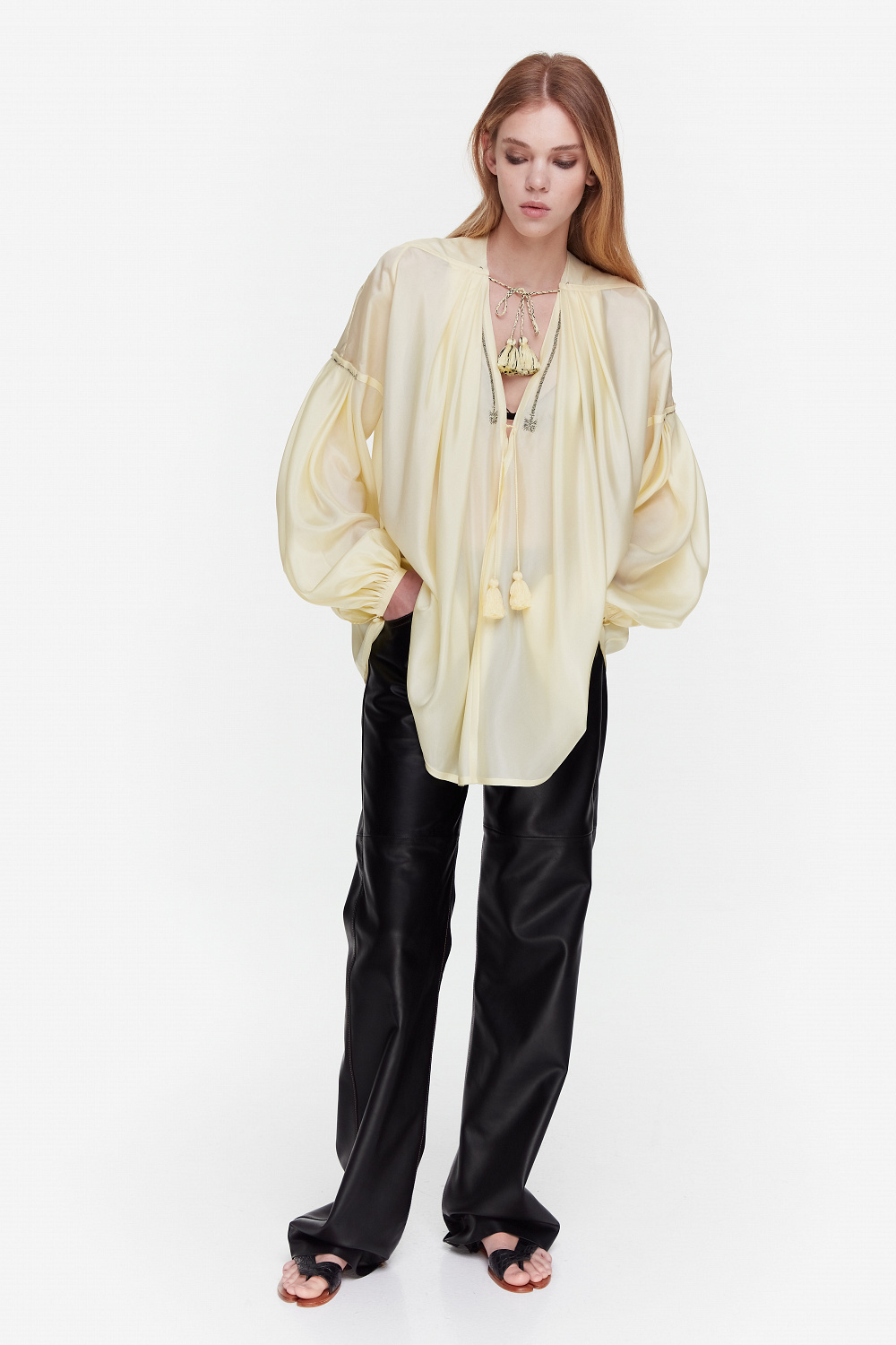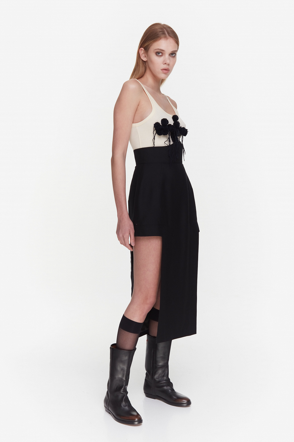 Є тут і вечірній блок: прозора чорна сукня, шовкові комбінації та топи, що нагадують білизну, максісукня з білого шовку чи чорна з вишитими французькими манжетами.