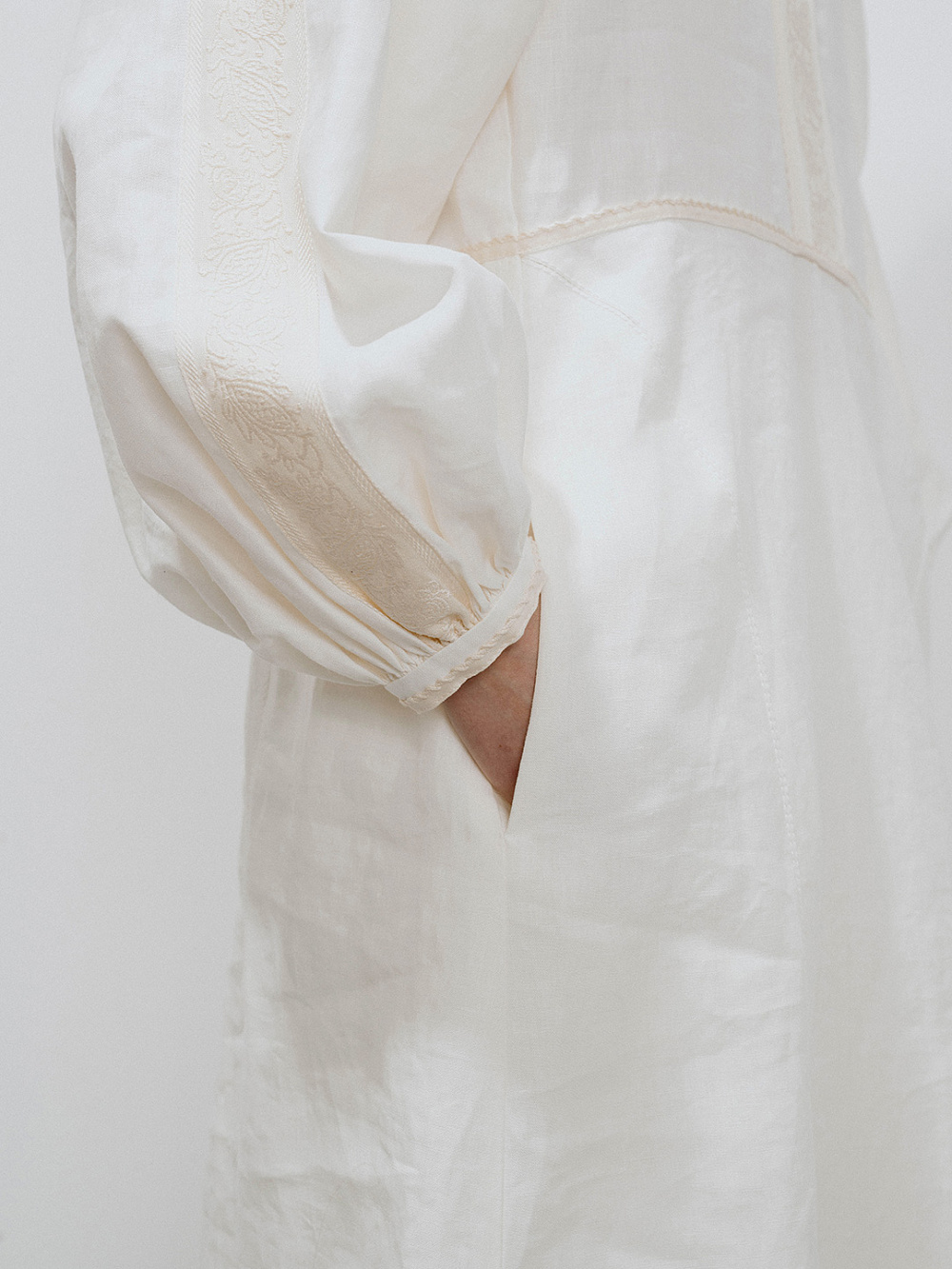 Особливим акцентом цієї колекції стала лляна сукня OLENA. Це українське жіноче ім`я походить від грецького Ἑλένη (Helénē) і означає «сонячний промінь», а точніше, «сяйливе світло». Сукня створена зі 100% льону і прикрашена жакардовим полотном ручної роботи, яке виткане на верстаті 19-го століття бавовняними нитками. Важливим акцентом також є ексклюзивно вилиті ґудзики у вигляді сонця та наконечники ручної роботи з латуні. Окрім цього, DAFF уперше представляє взуття ручної роботи з декоративною латунною прикрасою у вигляді сонця та парфумовані свічки з трьома різними ароматами для дому.