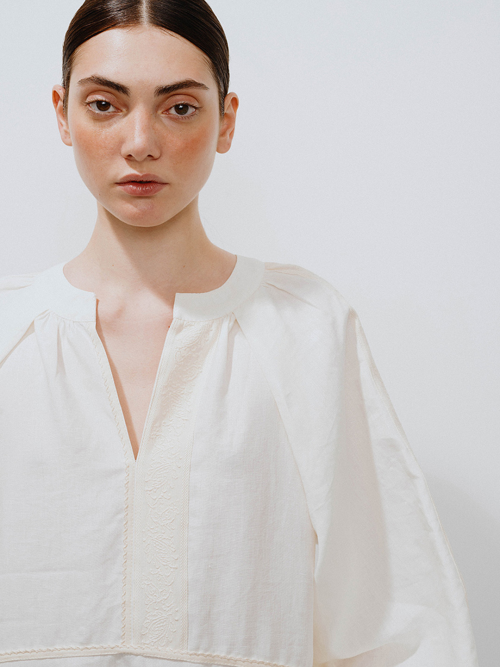 До колекції увійшли короткі та довгі оверсайз-жакети, тренчі з бавовняного полотна, сукні, сорочки з шовку та льону, костюми вільного крою, вироби з деніму, вʼязані поло з букле, светри і спідниці з візерунком, які привертають увагу своєю фактурою.