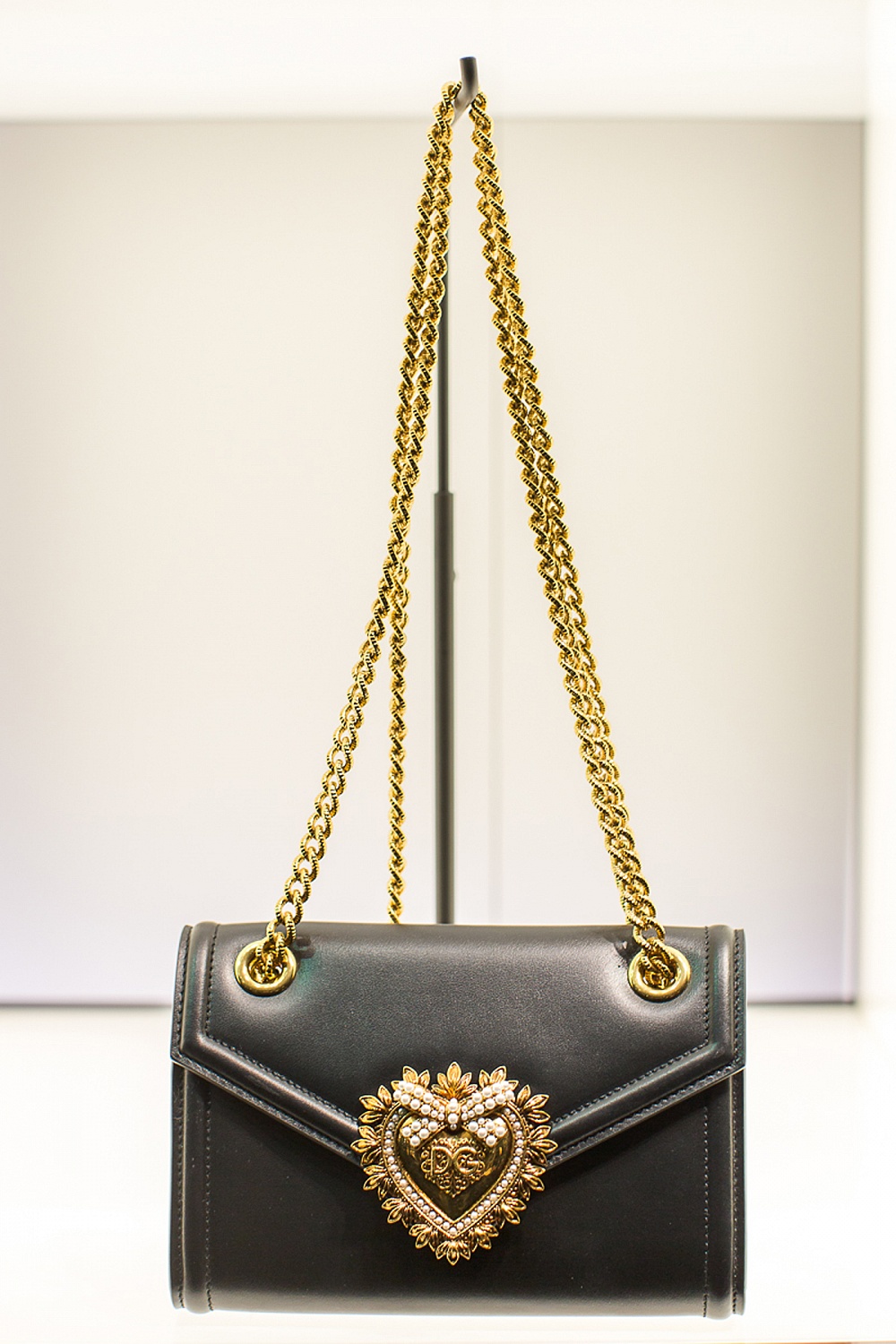 25 октября в киевском бутике Dolce & Gabbana прошел коктейль, посвященный сумке Devotion – новой it-bag в аксессуарной семье знаменитого итальянского бренда. Сумка стала самой фотографируемой во время Миланской недели моды в этом феврале. Дело в том, что на подиуме она появилась не в руках у моделей (что было бы логично!), но совершила полет на дроне. Гаджеты кружили над подиумом, держа на себе будущую героиню светской хроники. Благодаря универсальному и современному дизайну Devotion bag обещает занять почетное место в ряду классических вневременных моделей. Сумка существует в пяти разных моделях, трех размерах и цветах, поэтому каждая девушка может выбрать ту, которая лучше всего вписывается в ее стиль. Металлическая ручка из латуни покрыта 24-каратным золотом. Сумку можно носить в руках, на плече или через плечо.