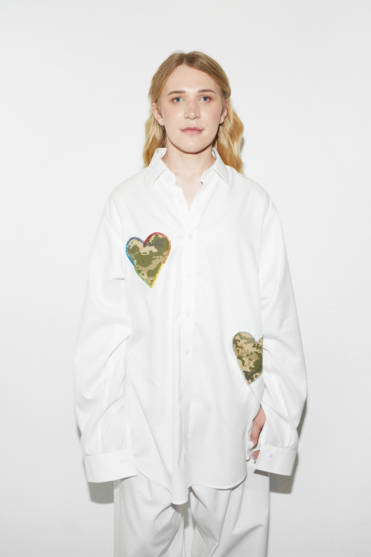 Цього разу до місяця Прайду дизайнер бренду Костянтин Омеля присвятив дроп військовим зі спільноти LGBTQ+, які боронять незалежність України на фронті. Дві монохромні сорочки прикрашені аплікаціями з військового камуфляжу у формі серця. Майстри бренду вручну оздобили серця кристалами у символічних кольорах веселки. Ще одна, повністю біла сорочка, має виріз на спині у формі великого серця. Вона символізує чистоту, прийняття і наповненість любов’ю — те, до чого прагне вся спільнота LGBTQ+ в Україні. Головною героїнею мініколекції стала Емілі, трансгендерна жінка-військова. Вона пішла на фронт у 2014-му році в тоді ще добровольчий батальйон «Азов» і продовжила службу у лавах ЗСУ, отримавши звання капітана. Навесні минулого року Емілі почала трансгендерний перехід, який підтримали усі її побратими та друзі. Лише безпосередній керівник ініціював початок процесу звільнення військовослужбовиці, який триває і досі. Костянтин Омеля сподівається, що цей реліз приверне увагу до подібних проблем LGBTQ+ спільноти в Україні, яка досі зазнає утисків прав і свобод.