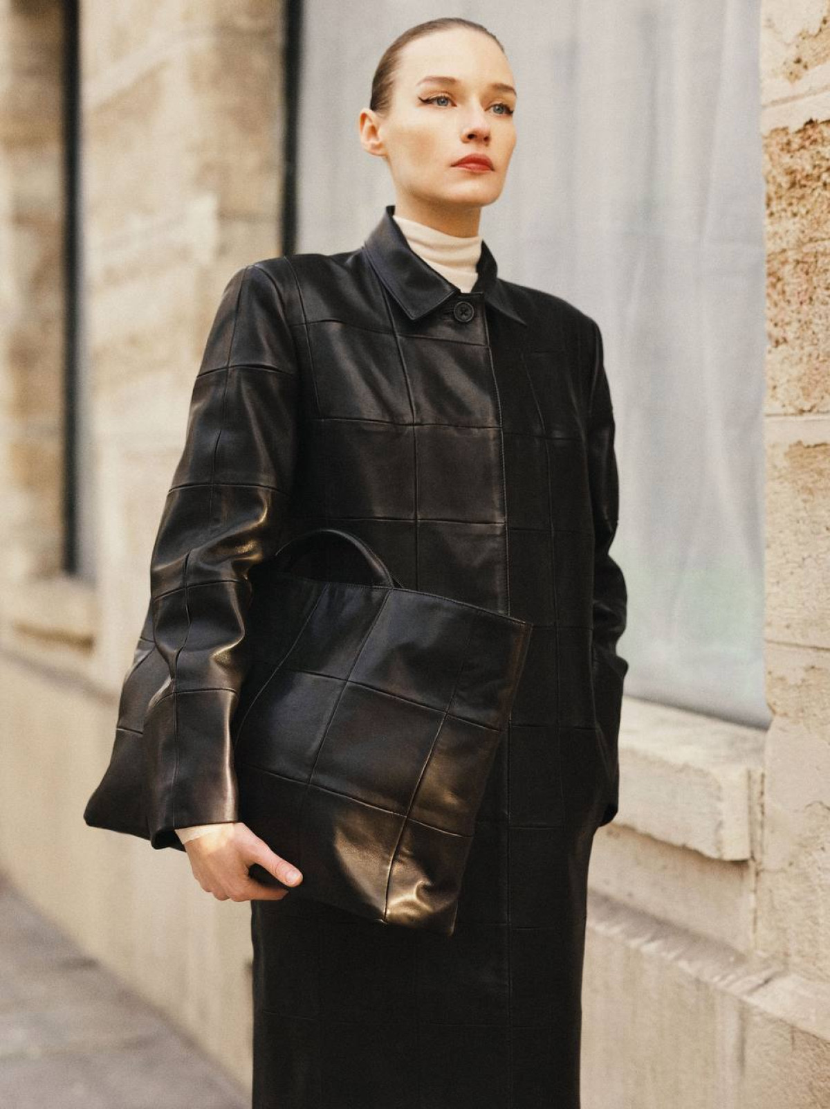 Окрім верхнього одягу, бренд презентував асиметричні спідниці міді з м’якої шкіри, бунтарські міні, які поєднуються з потертими байкерськими жакетами, а також нові сумки в техніці MOSAICA із залишків шкіри після виробництва курток.