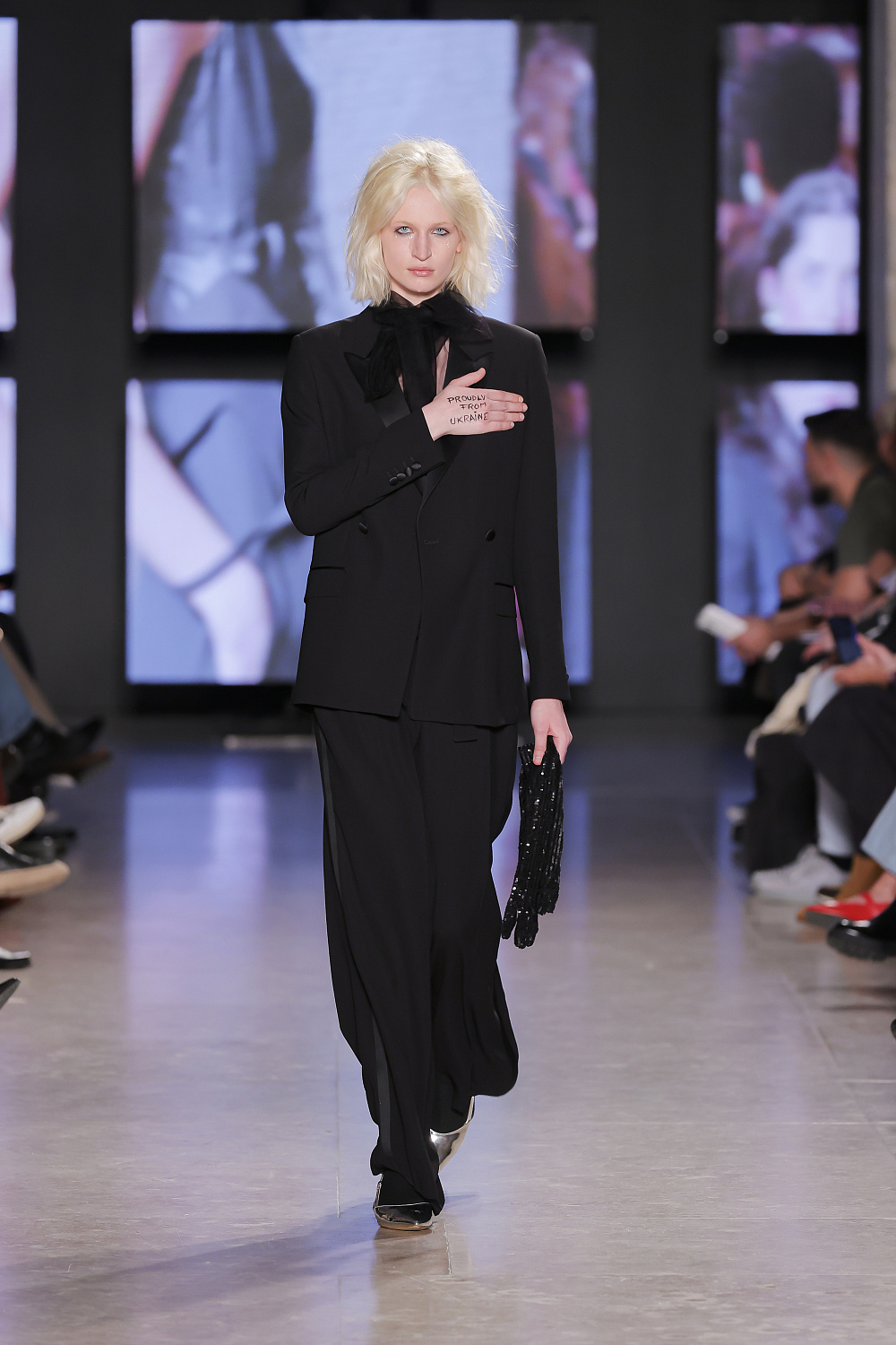 Під час Лісабонського тижня моди, що днями відбувся в португальскій столиці, нову колекцію презентував один із відомих локальних брендів — Nuno Baltazar. Майже тотальний чорний монохром, драматика «Чакони» Йоганна Себастьяна Баха як музичний супровід і сльози на обличчях моделей: настрій показу зчитувався буквально з перших секунд. Але найбільше поглядів прикувала така емоційна деталь: на руці однієї з моделей чорним маркером було написано Proudly from Ukraine. Протягом показу ці написи на тілі моделей виднілися ще декілька разів, а у поєднанні зі сльозливим макіяжем і чорним кольором говорили вони про одне — про наше сьогодення.