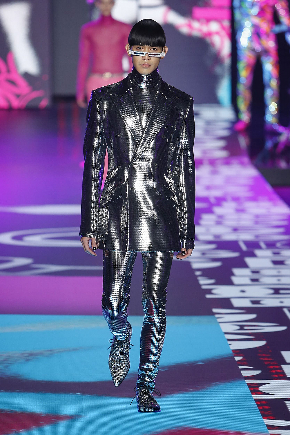 Нова колекція Модного будинку — це акцент на вподобаннях молодого покоління, яке любить експериментувати, кидати виклик застарілим правилам і створювати для себе яскраве майбутнє. Одяг прикрашали принти, візерунки, а також деталі — кристали, паєтки, каміння переливались і на водолазках, і на металевих підвісках, і на сонцезахисних окулярах. Образи кожної моделі створені як окремий перформанс: наприклад, металевий костюм-двійка або футболка оверсайз із мішкуватими штаньми.