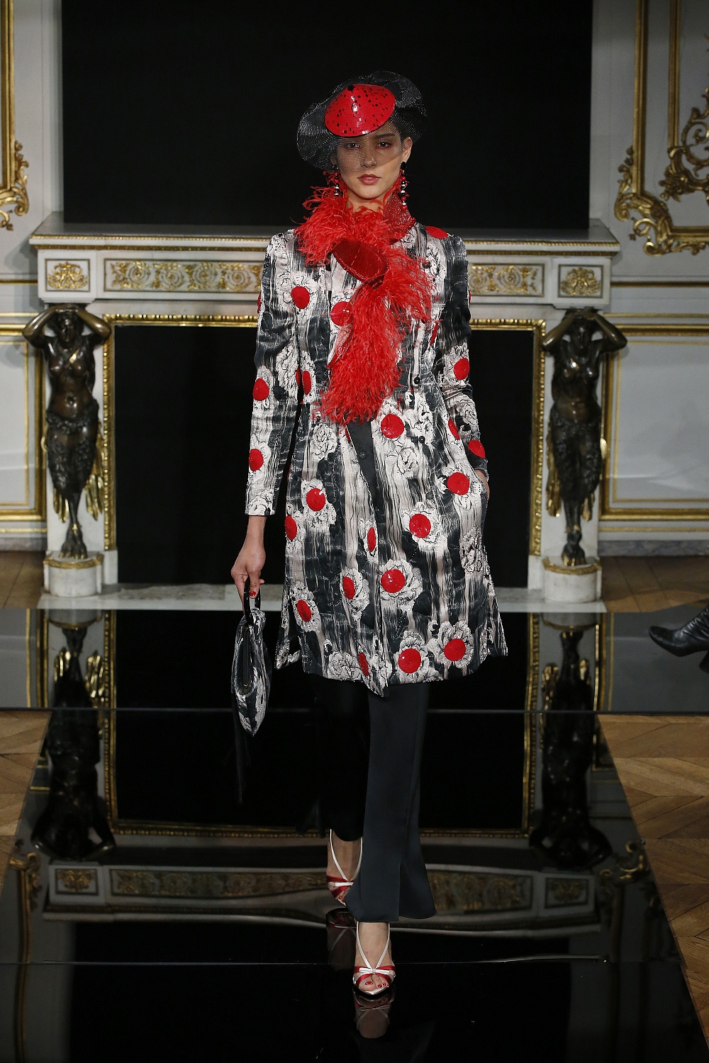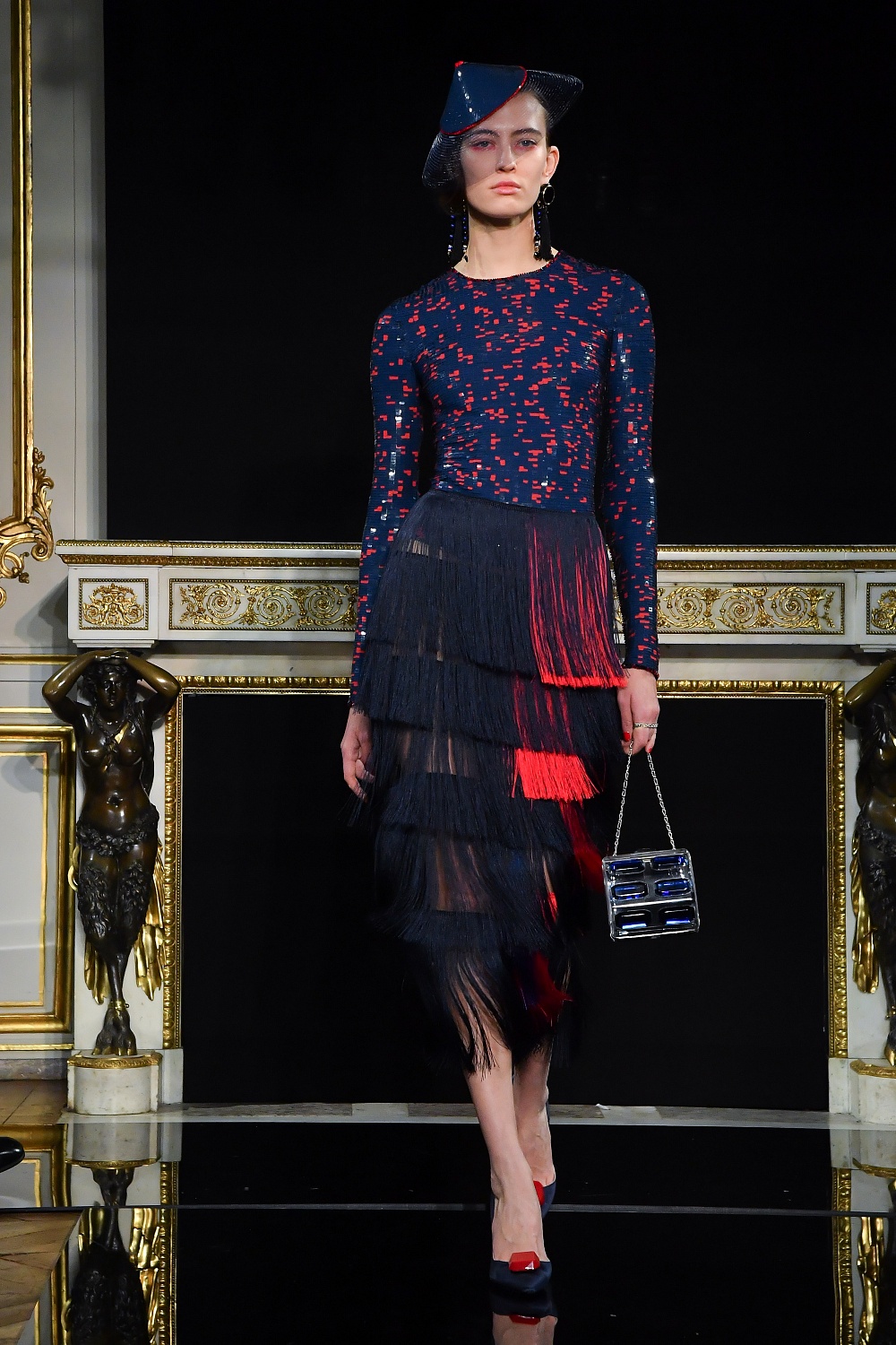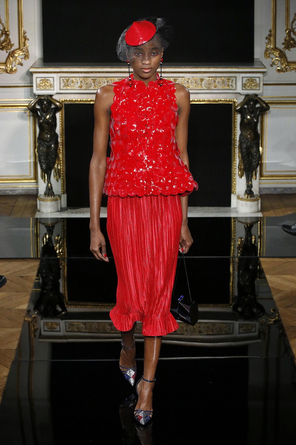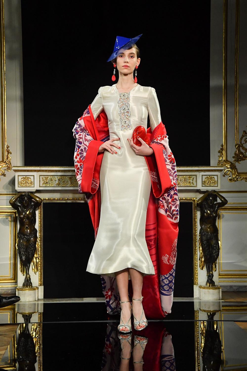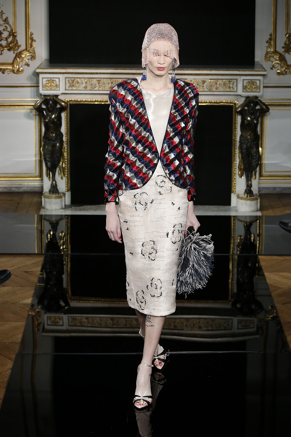 На этот раз модный дом сделал ставку на восточных принтах, безупречных жакетах-кимоно, платьях длины миди с бахромой (никакого мини!) и юбках-карандашах в пайетках. Из деталей стоит отметить крупные украшения, миниатюрные шляпки-конусы и парики из стекляруса.