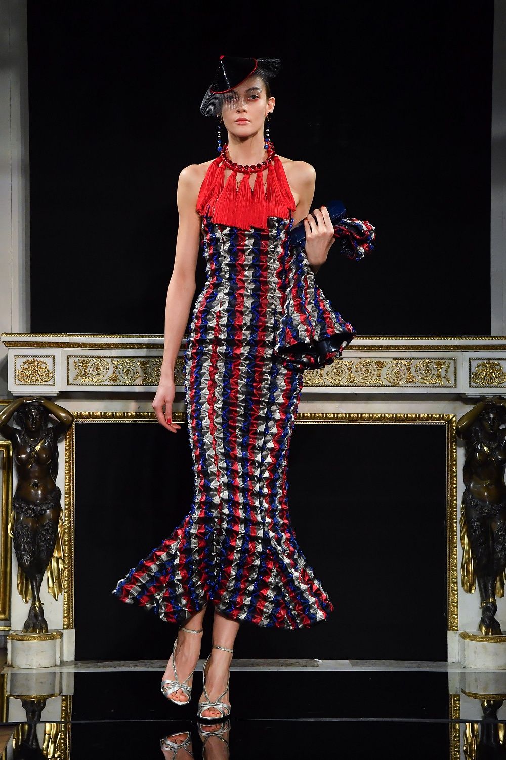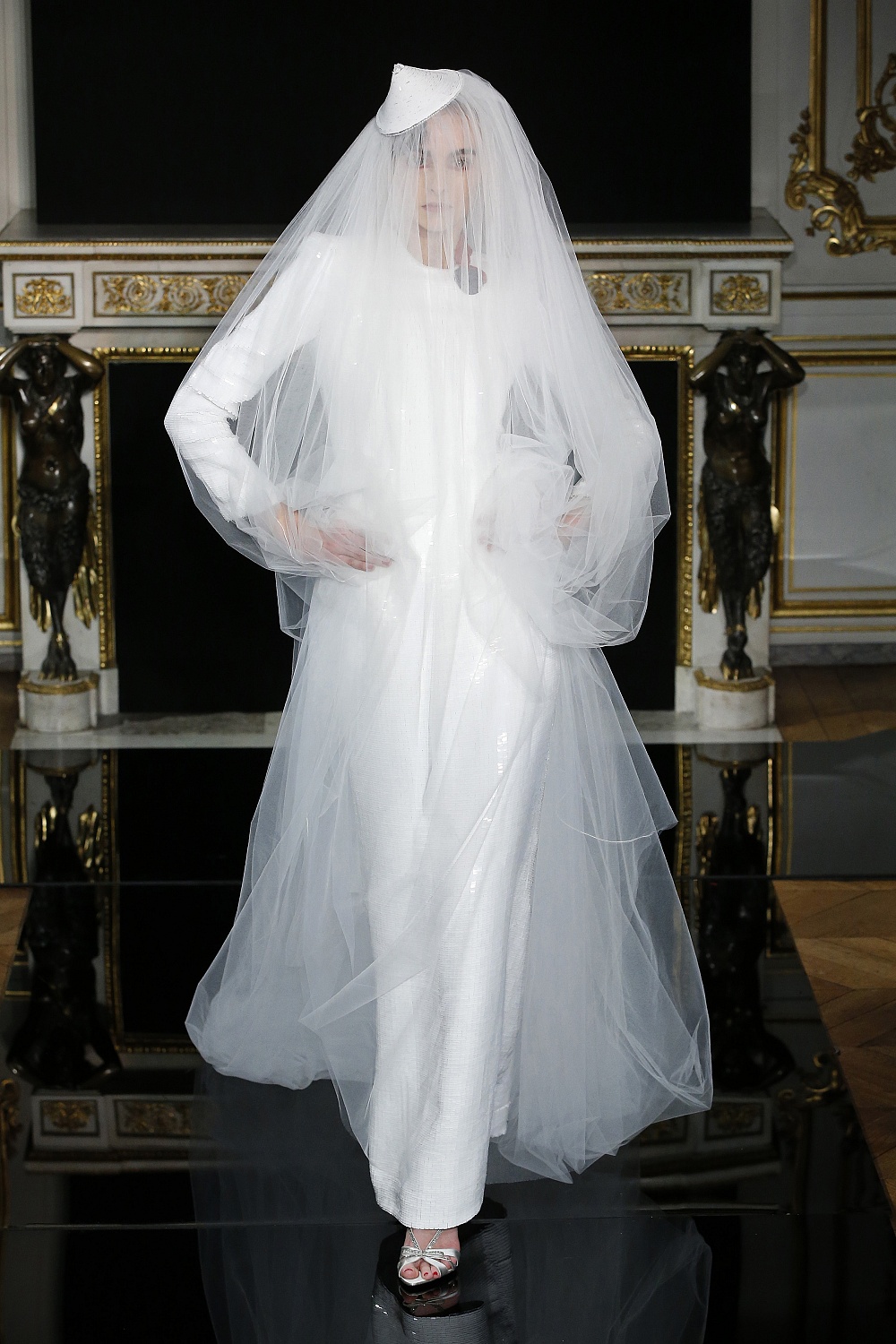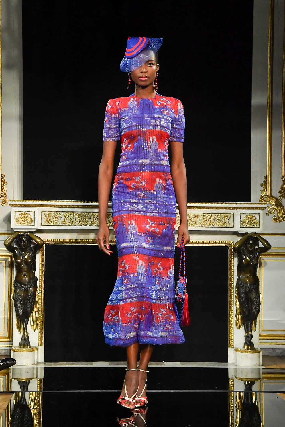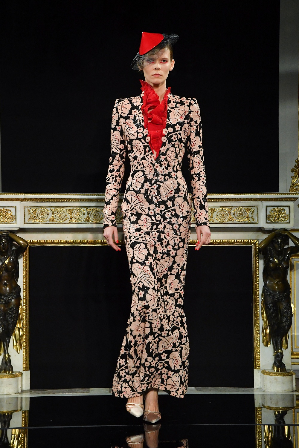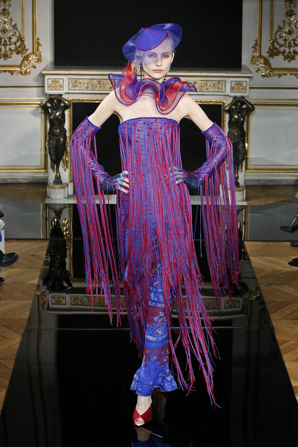 На этот раз модный дом сделал ставку на восточных принтах, безупречных жакетах-кимоно, платьях длины миди с бахромой (никакого мини!) и юбках-карандашах в пайетках. Из деталей стоит отметить крупные украшения, миниатюрные шляпки-конусы и парики из стекляруса.