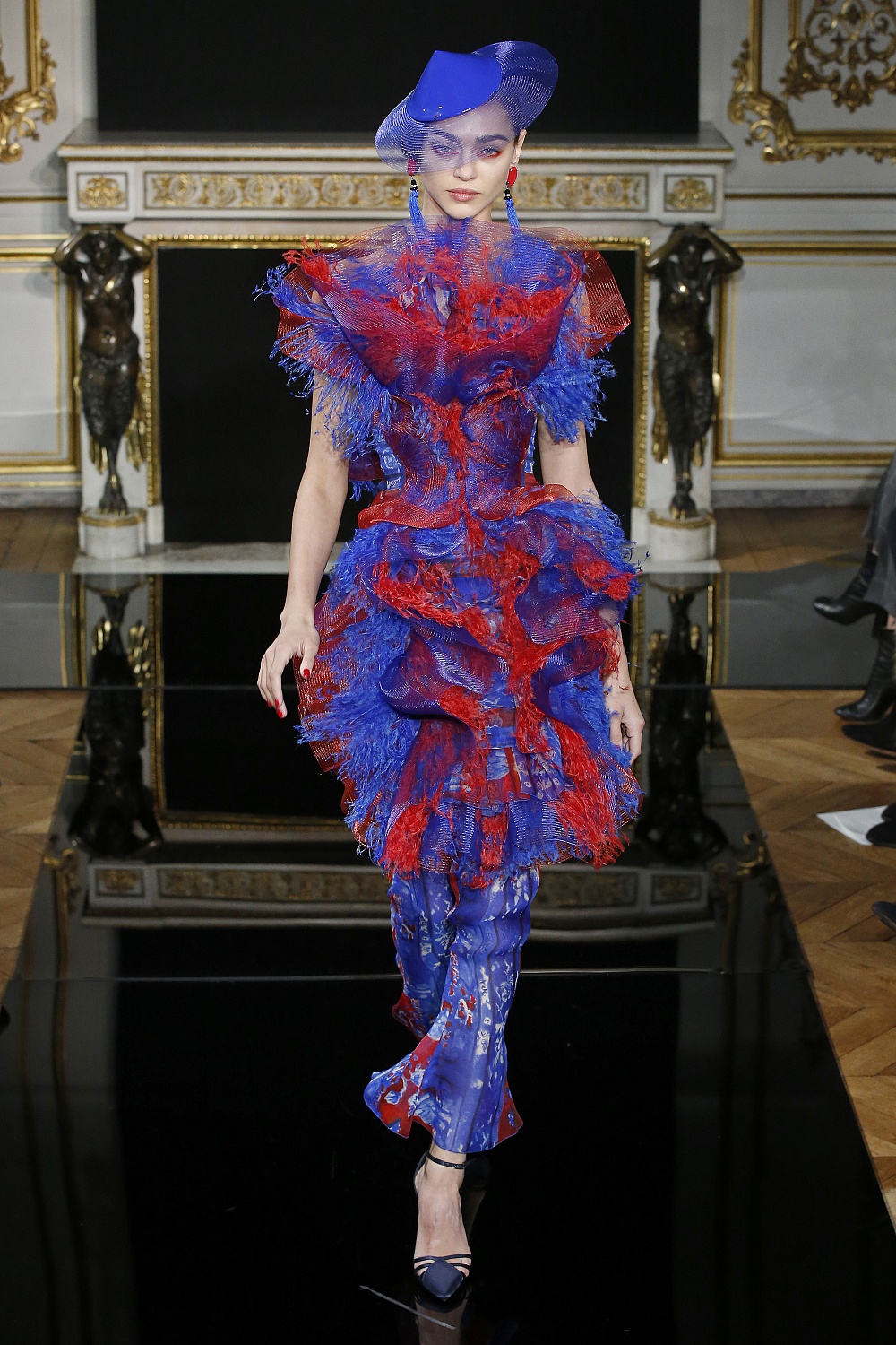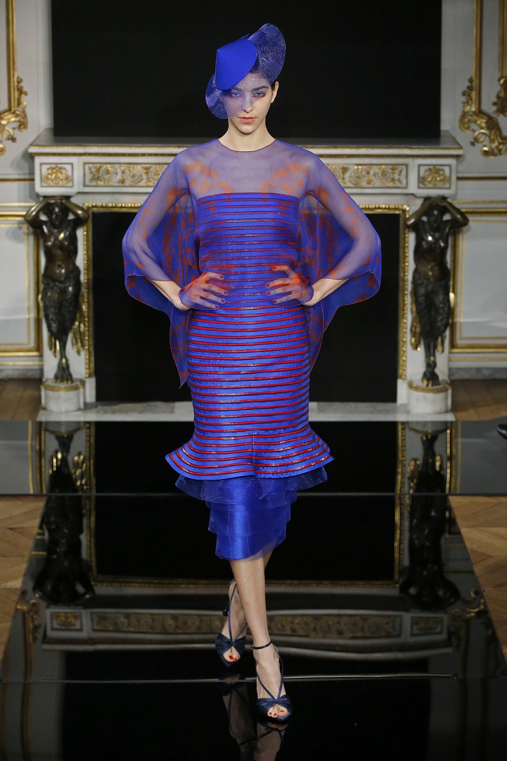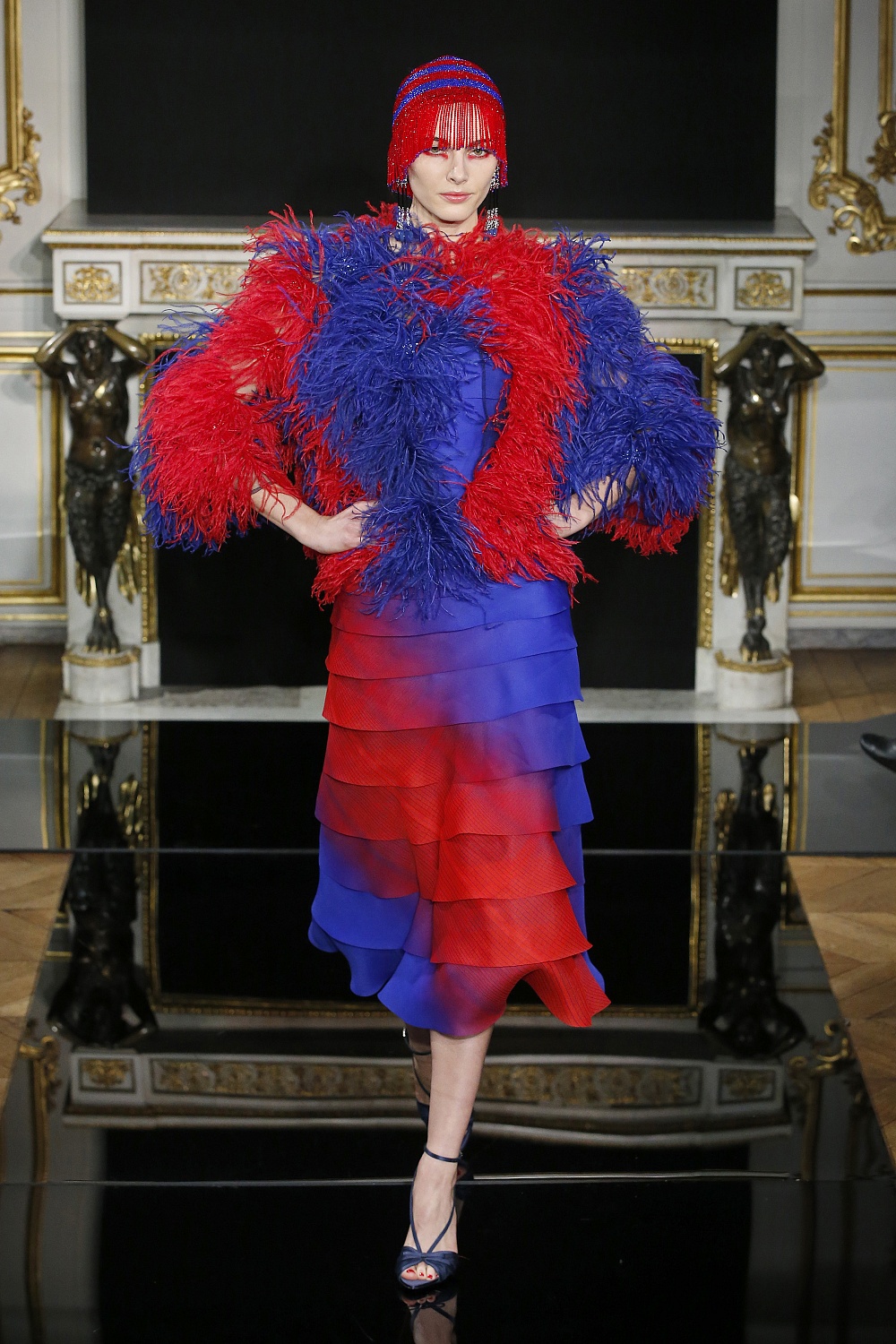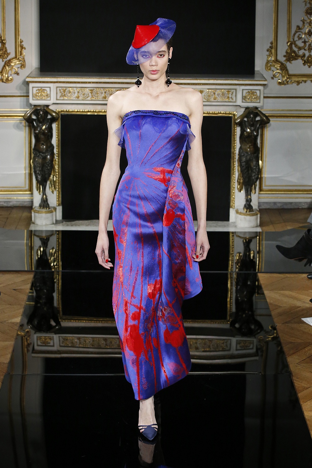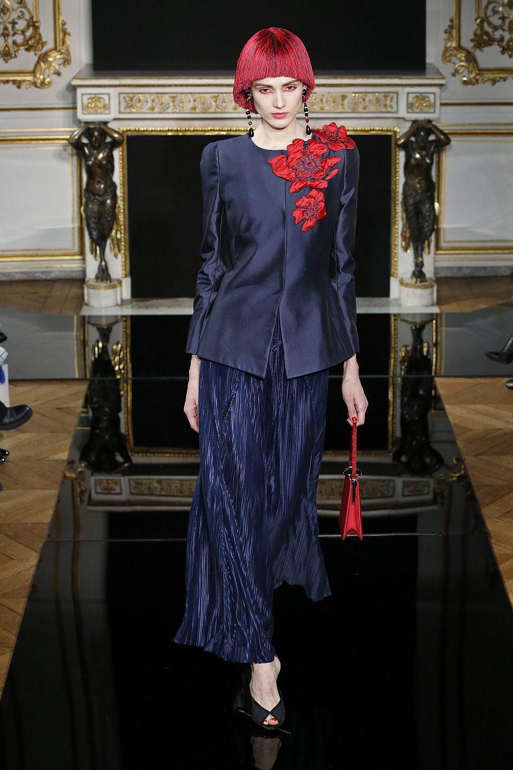 Элегантные силуэты, блестящие ткани и игра на контрастах – такой получилась кутюрная коллекция Giorgio Armani Privé. Для ее создания дизайнер черпал вдохновение в эстетике ар-деко и ориентальной моде начала ХХ века. Главным цветовым дуэтом стало сочетание синего с красным. А струящийся шелк отлично гармонировал с ярким винилом и многослойной органзой.