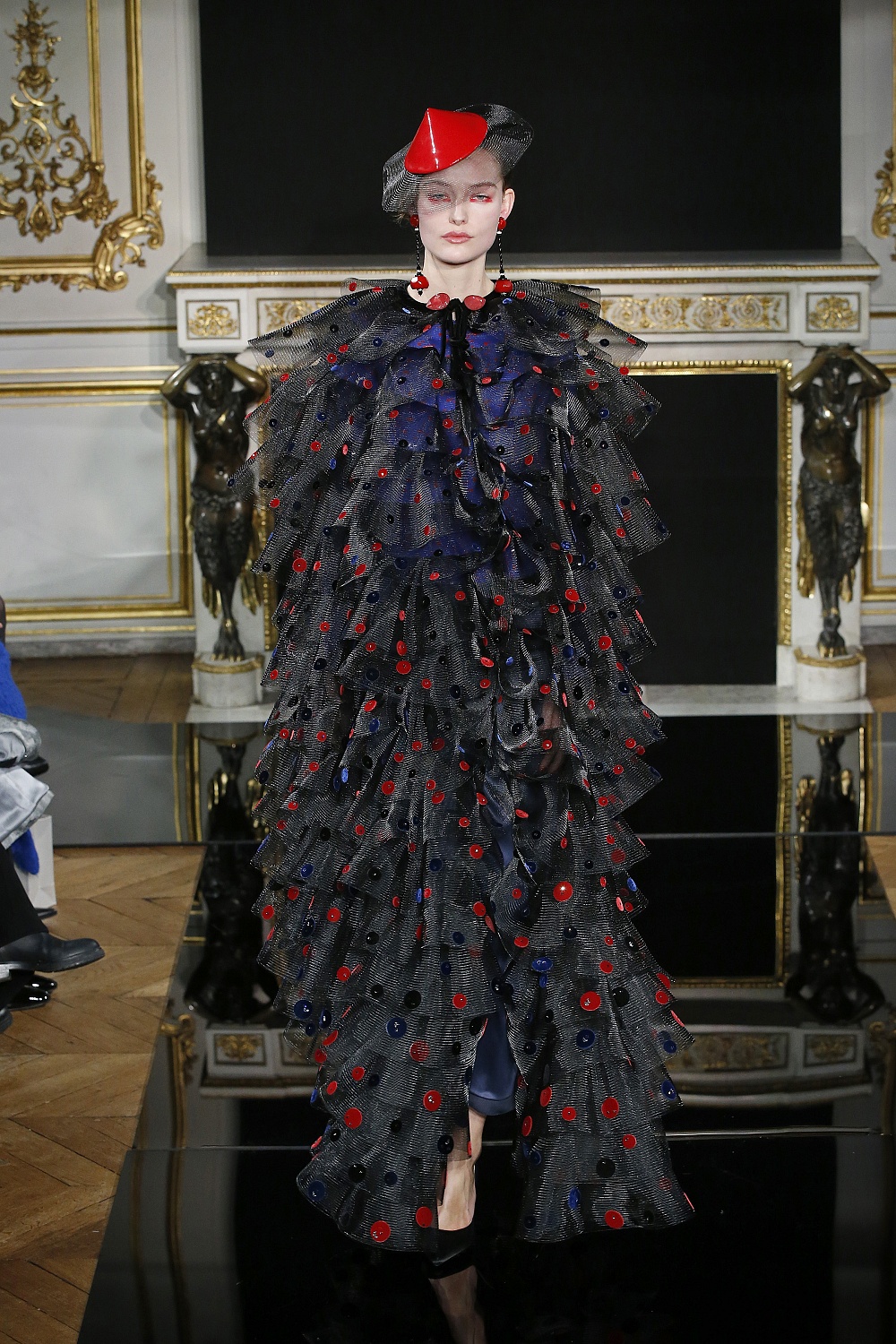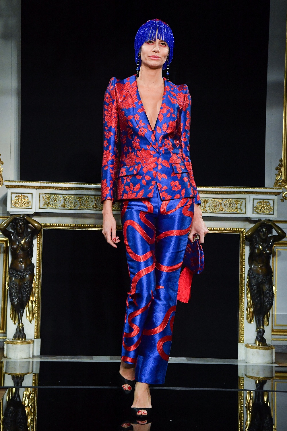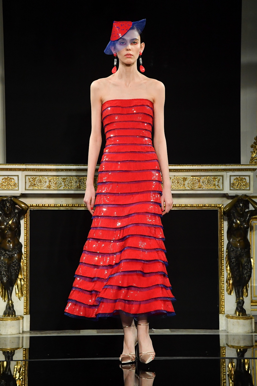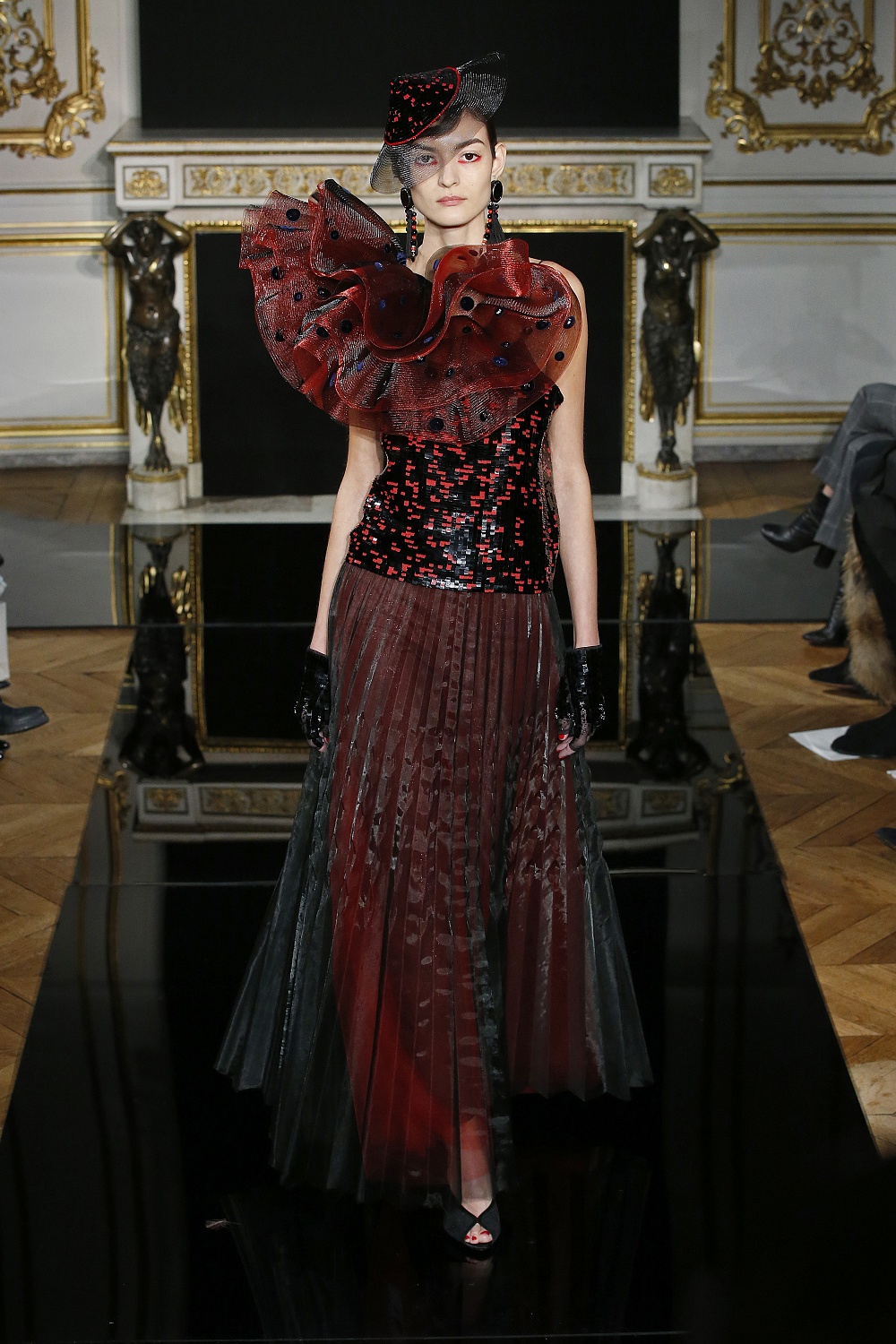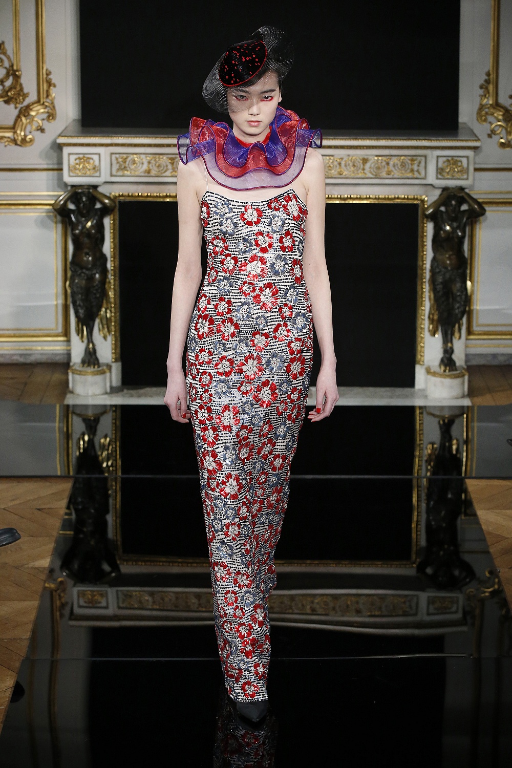 Элегантные силуэты, блестящие ткани и игра на контрастах – такой получилась кутюрная коллекция Giorgio Armani Privé. Для ее создания дизайнер черпал вдохновение в эстетике ар-деко и ориентальной моде начала ХХ века. Главным цветовым дуэтом стало сочетание синего с красным. А струящийся шелк отлично гармонировал с ярким винилом и многослойной органзой.