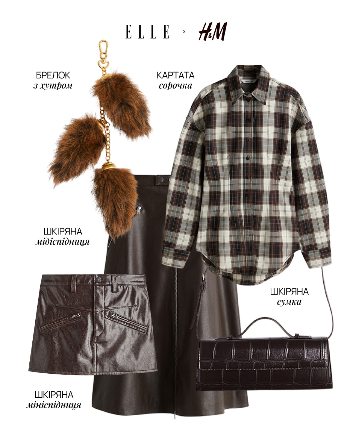 Серед особливостей шкіряних виробів — куртка-авіатор оверсайз зі знімним хутряним коміром і спідниця з екошкіри з блискавками, що виглядає одночасно грайливо ностальгічною та рішуче сучасною.