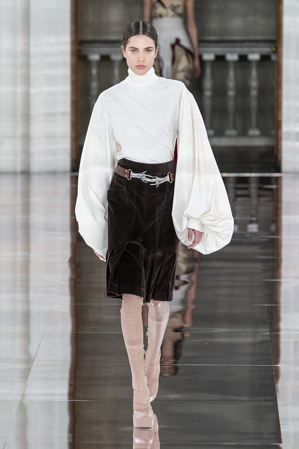 «В новом сезоне я размышляю над противостоянием утонченности и бунтарства. Меня вдохновляли разные представления о женщинах — их разные характеры и позиции. Это привело меня к мысли, что мы не должны следовать правилам и быть смелыми. Крой эволюционировал, стал новым, свежим. Более объёмные пропорции кажутся мне сейчас уместными. Я хочу понять, как чтить традиции, но при этом бросать вызов условностям. Быть подрывной, но утонченной. Классические материалы и наследие переосмысливаются, формы и комбинации смешиваются с новой непосредственностью и игривостью. Вот что я называю своим нежным бунтом», — говорит про свою коллекцию Виктория.
