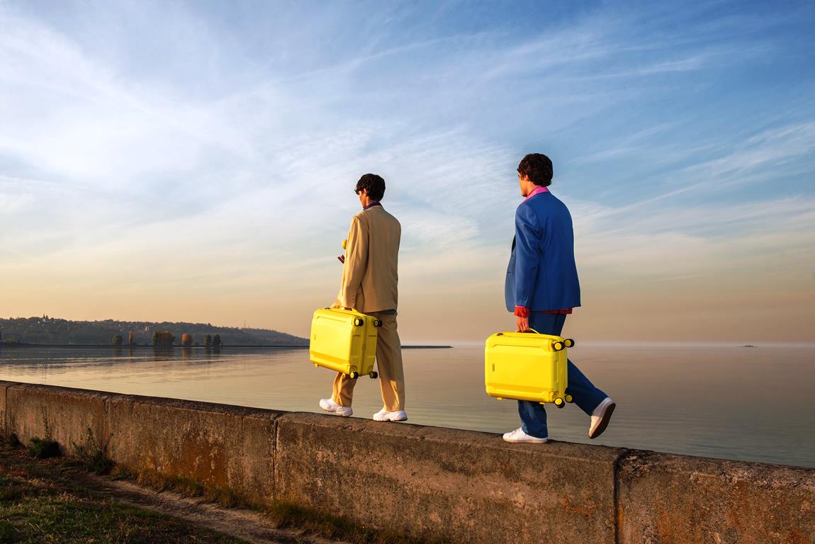 Съемка происходила в пяти столичных локациях: от Дворца бракосочетаний на ВДНХ до Киевского моря. Главные герои истории — чемоданы в оттенках Sweet Marshmallow, Sunny Lemon, Red Kiss, Blue Ocean и Cool Grey.