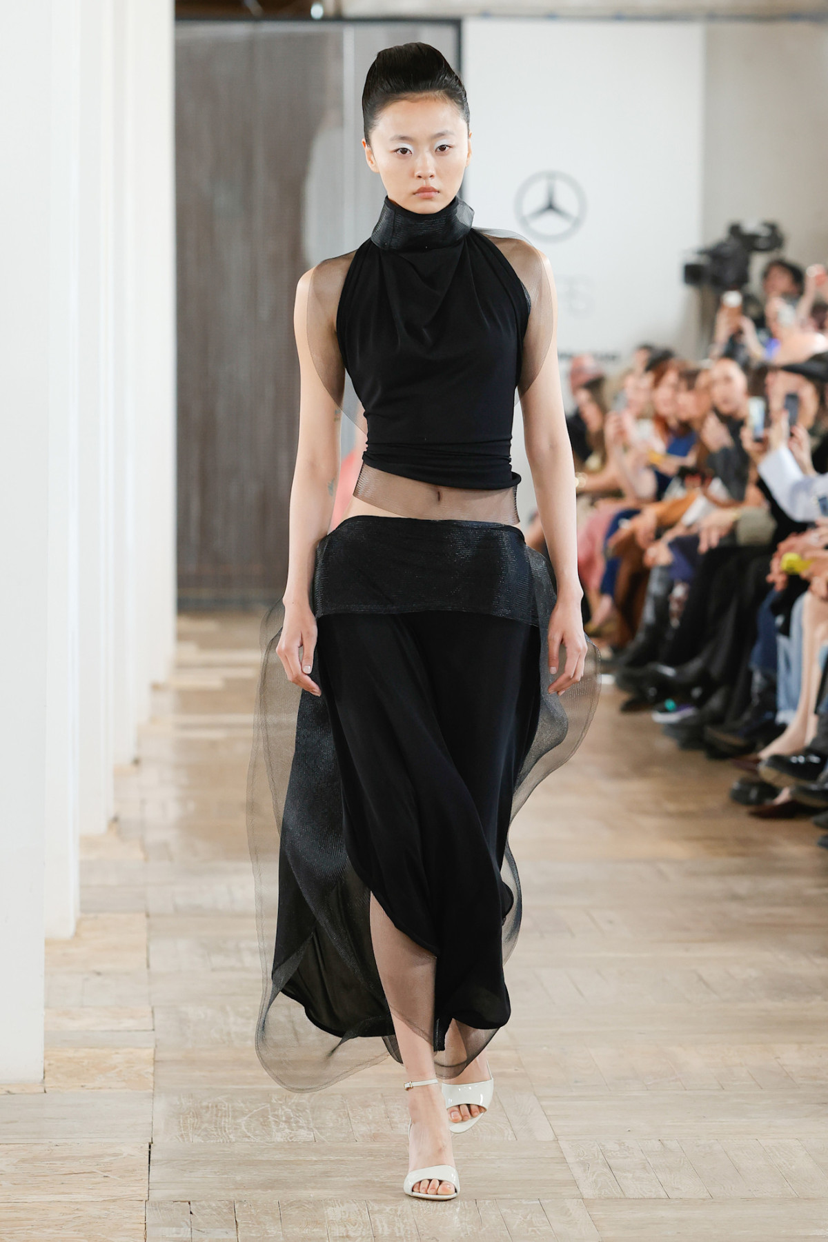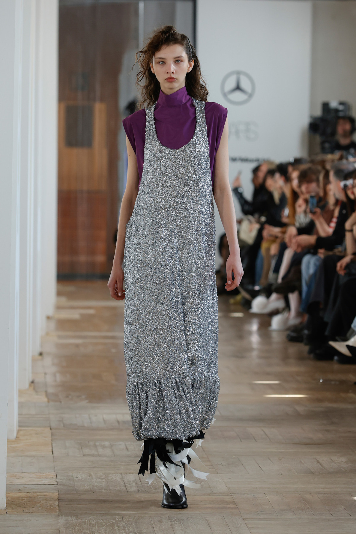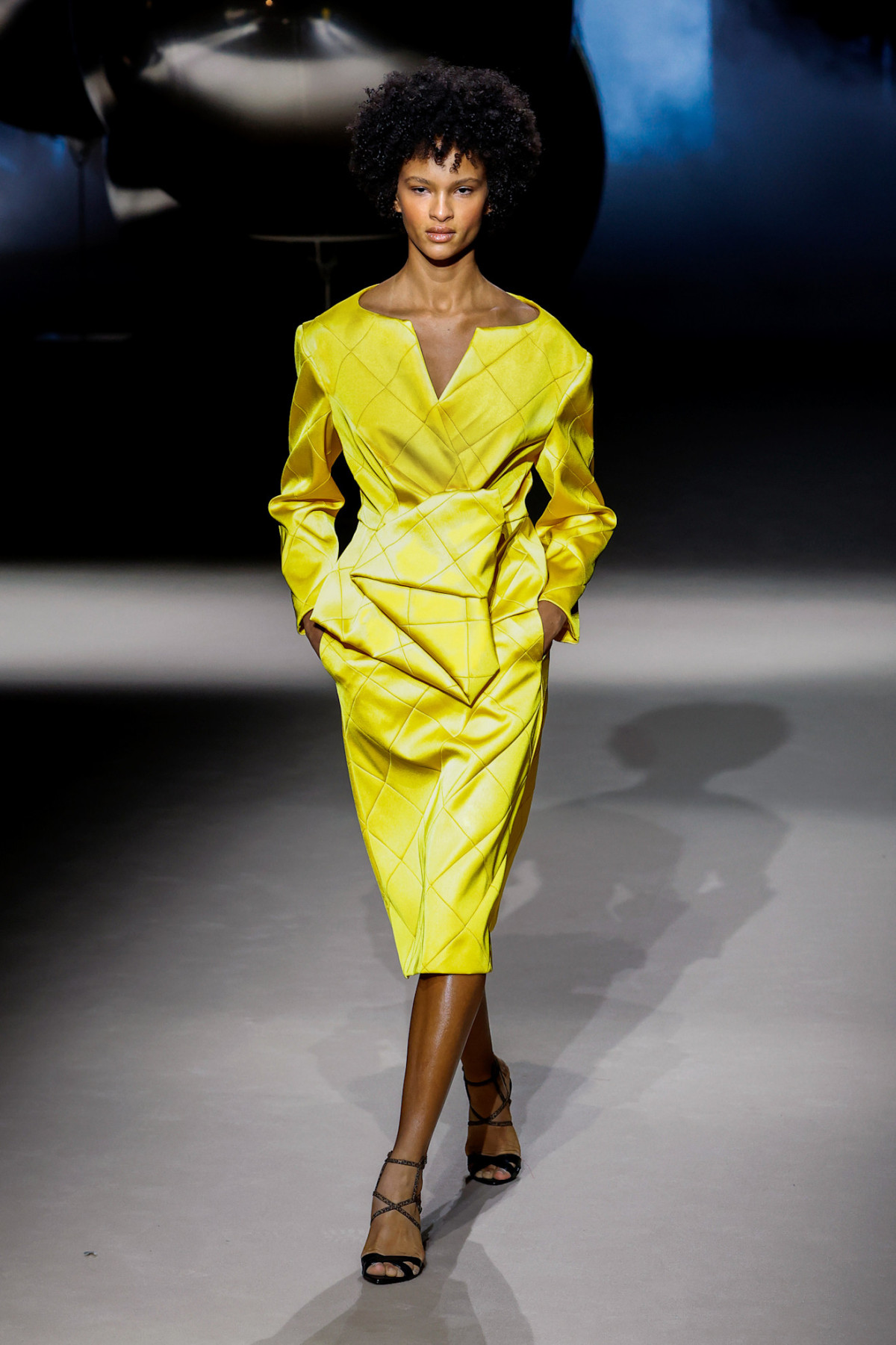 У декількох колекціях з’явилися пластикові фактури тканин, що переливаються при попаданні світла. Піонером у цьому став бренд Caducifolium із його експериментальними формами та сукнями, створеними з кругів.