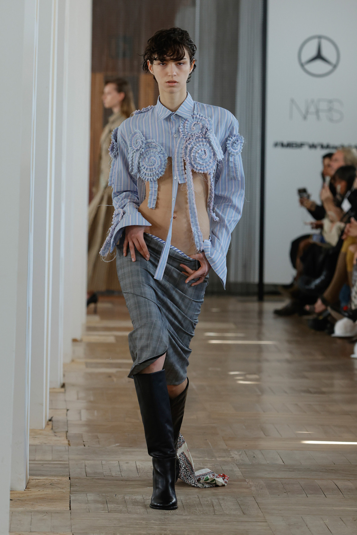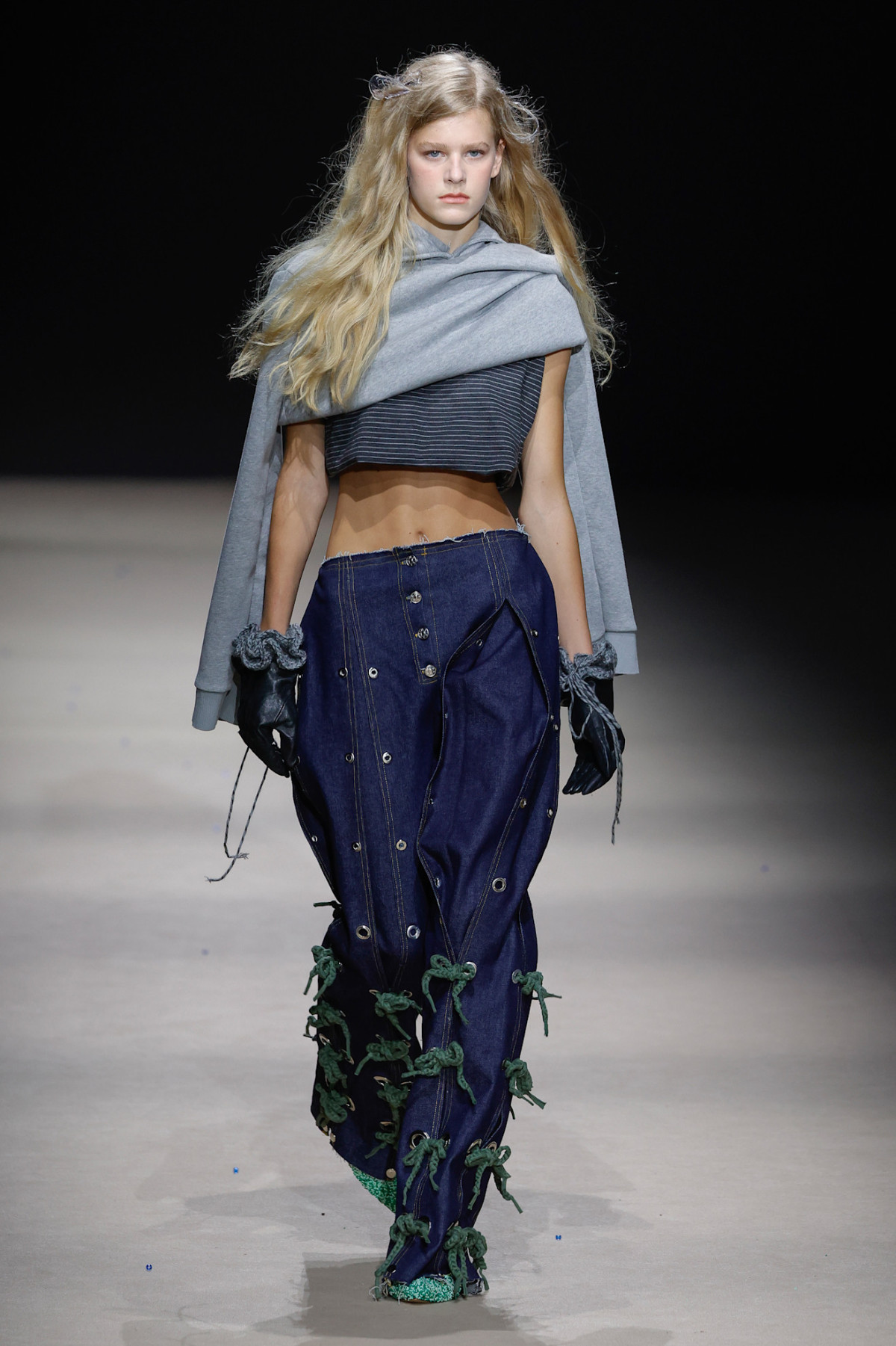 Цей прийом зустрічається у багатьох колекціях не тільки на Мадридському тижні моди, але тут він набуває дуже різних стилів та форм. Від ледве помітного «зазору» у класичних силуетах зі спідницею міді до розслаблених образів із широкими брюками, міні-спідницями та мікрошортами. Навіть у випадку з консервативним твідовим костюмом знайшлось місце для демонстрації тіла.