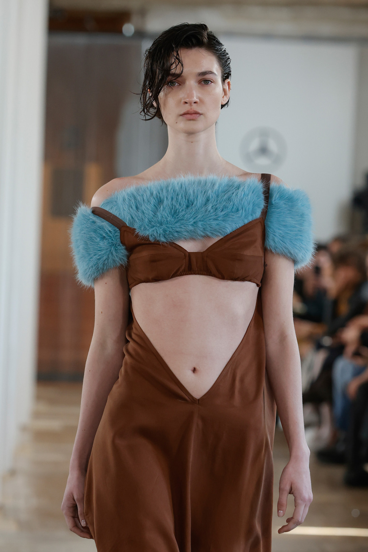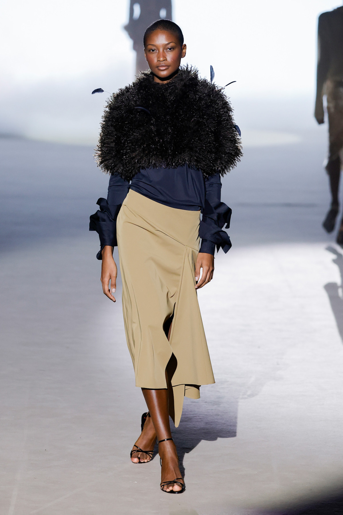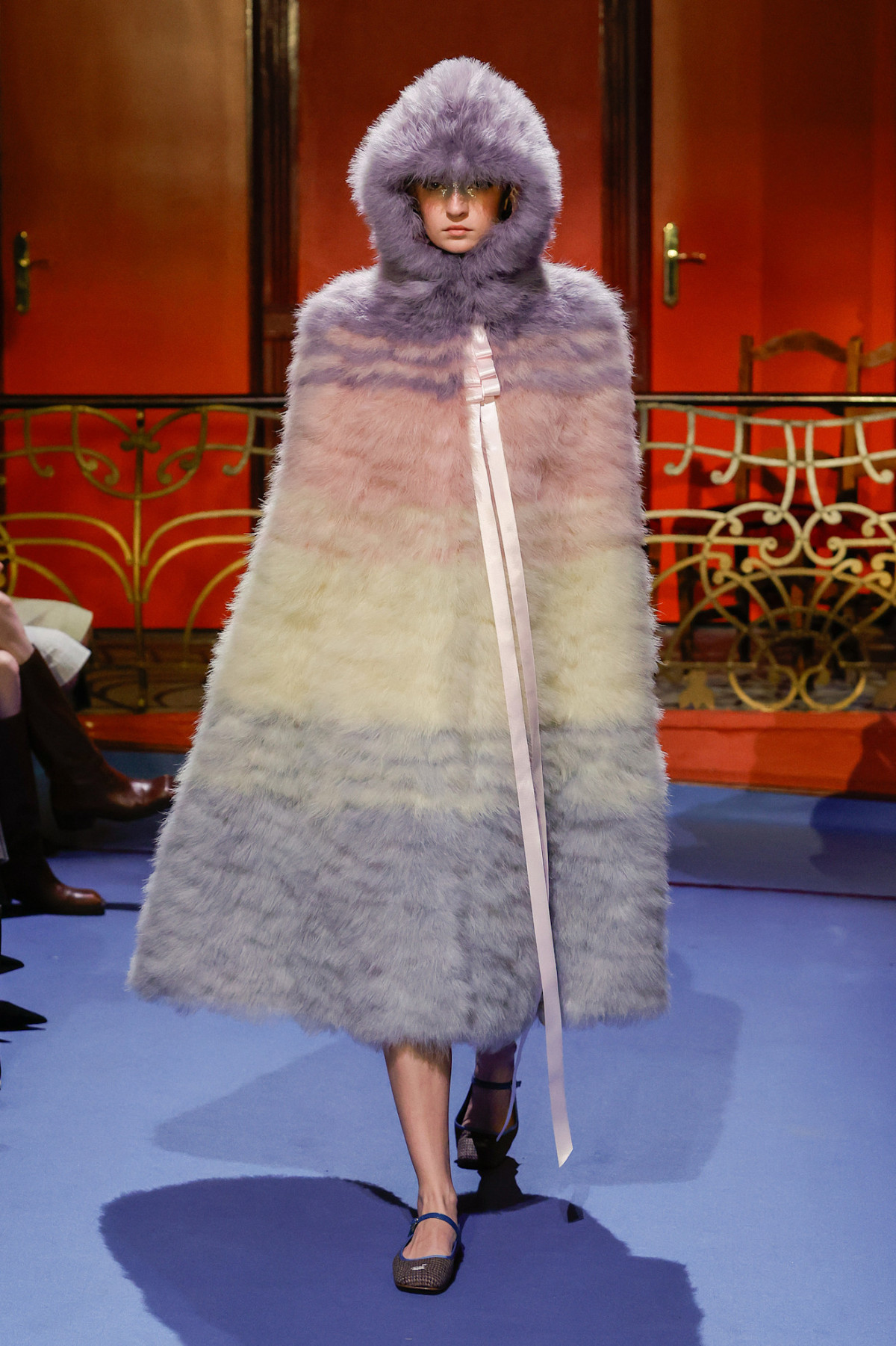 Пухнасті елементи з хутра або пір’я мігрують на одязі в нових колекціях. Такі деталі пом’якшують будь-який образ, навіть дуже утилітарне поєднання смугастої сорочки й кюлотів.