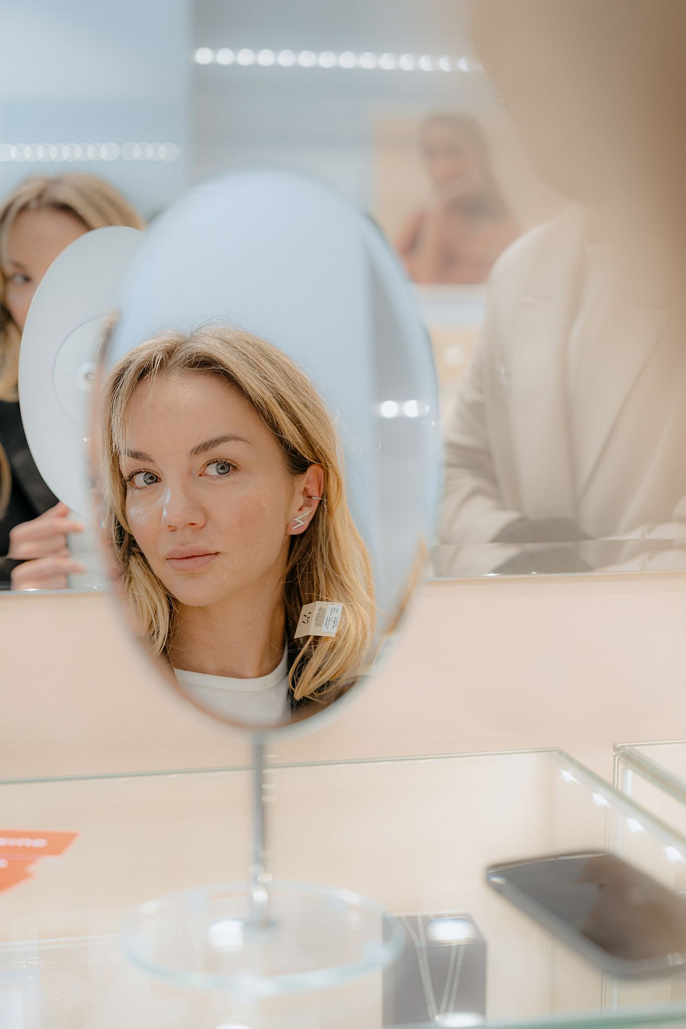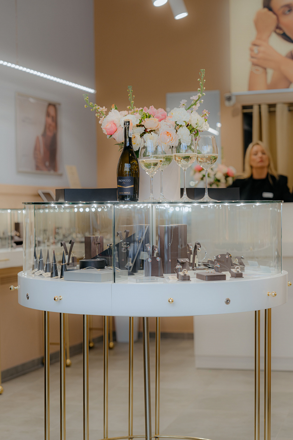 Інтер`єр оновленого магазину виконаний у новій концепції бренду з елегантними меблями та м`яким світлом, що створює ідеальні умови для ювелірного шопінгу. Вашу покупку збирають у спеціальному куточку пакування, а просто в залі функціонує відкрита зона ультразвукової чистки прикрас — для бренду важливо, щоб сервіси були доступні та видимі клієнтам. Також в оновленому магазині є зручна зона клієнта, де можна випити кави та приміряти прикраси.