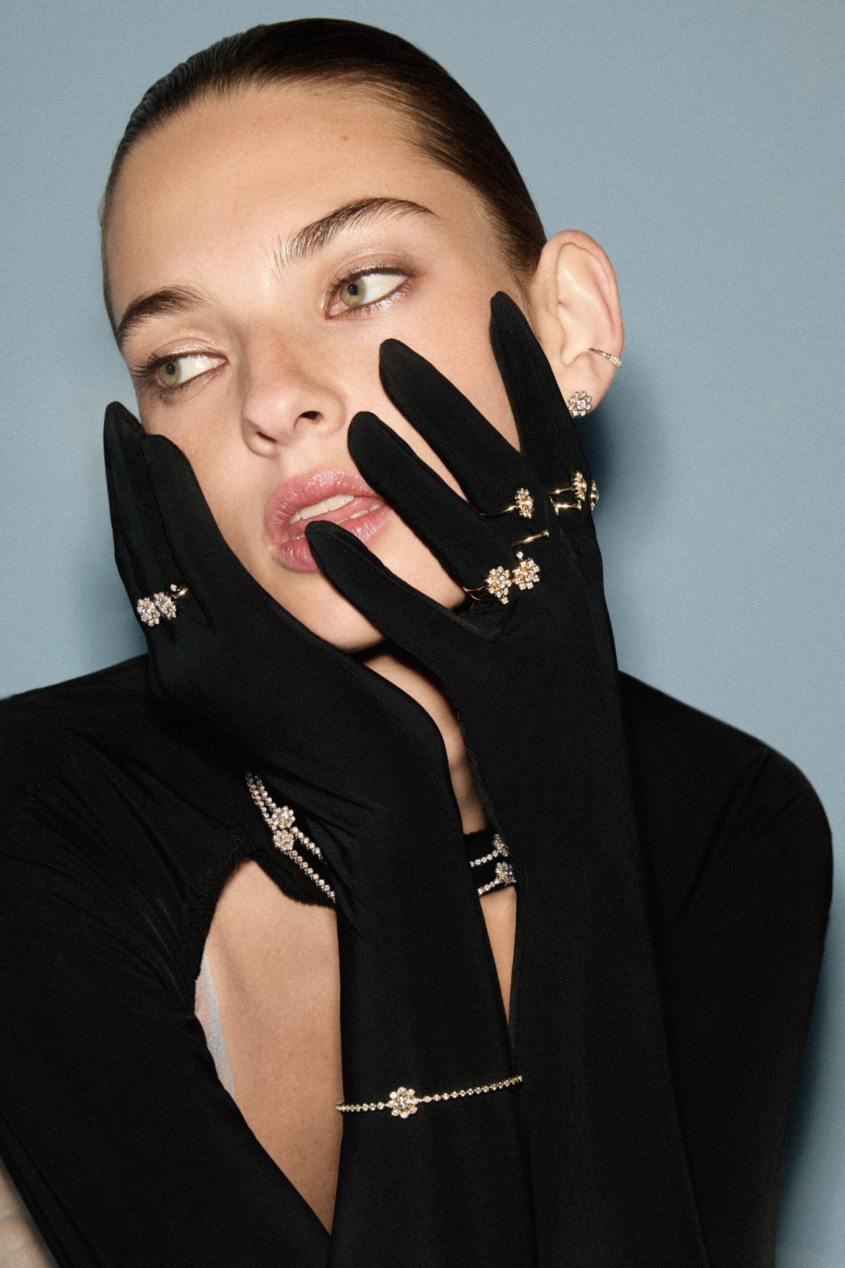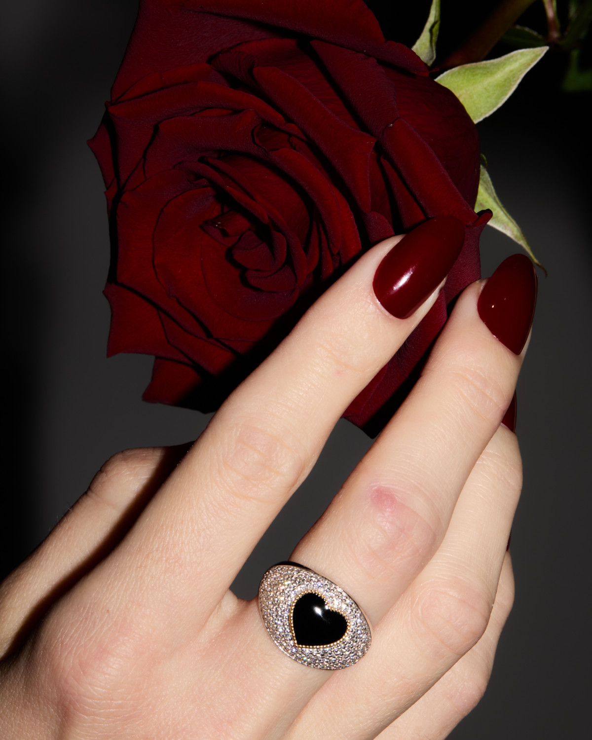 Кульмінацією колекції став об’ємний перстень у розсипі діамантів із серцем, вкритим чорною емаллю. На закріплення каміння в одному персні ювеліри витрачають понад п’ять годин ручної роботи.