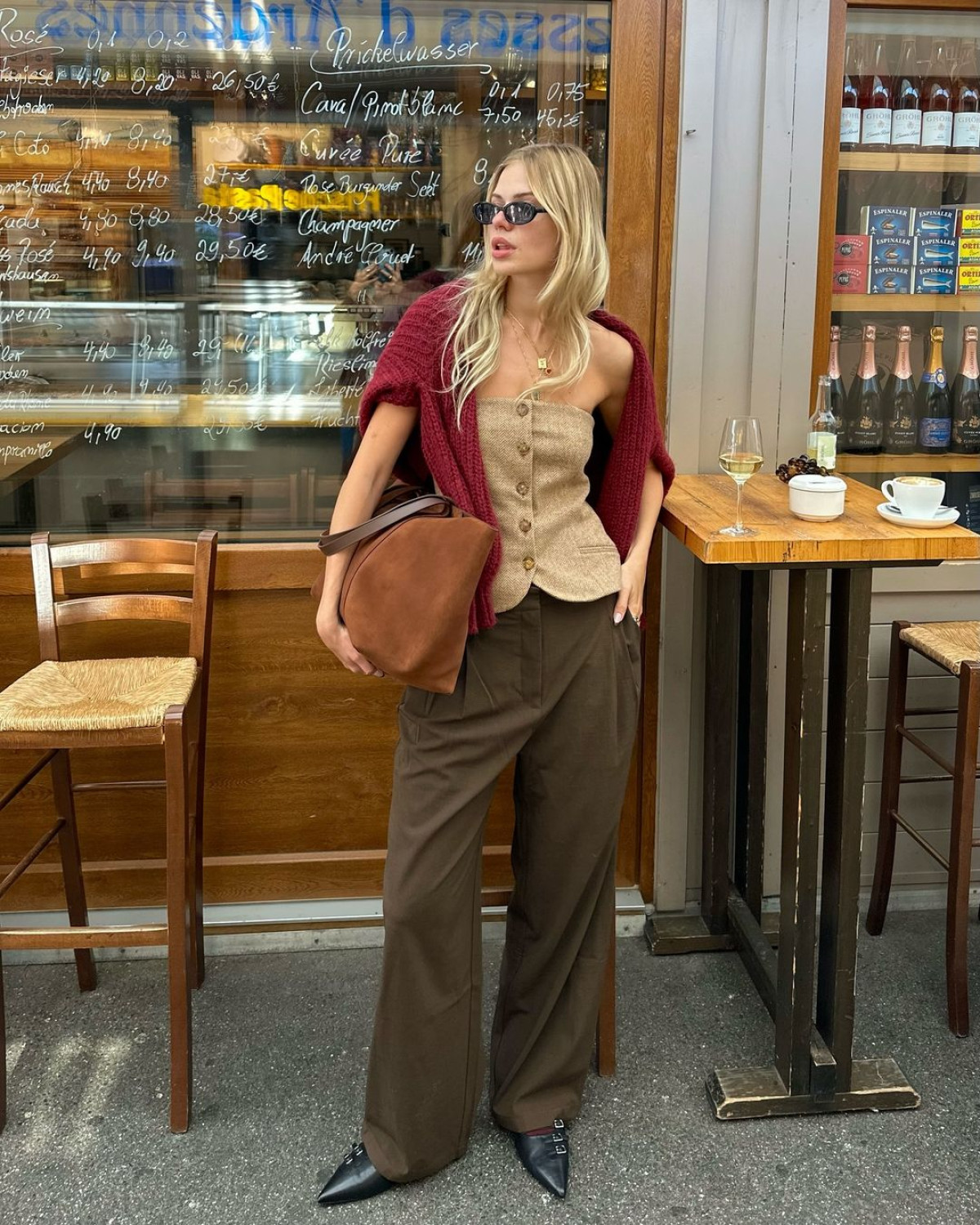 Насамперед звертаємо увагу на основу officecore — брючні костюми. Вільні мішкуваті з ноткою маскулінності чи більш жіночні з приталеними жакетами та поясами для підкреслення талії; контрастні, смугасті чи базові однотонні — підбирайте свою модель, відповідно до настрою та колірної палітри власного гардероба. Їх поєднуємо з базовими топами, блузами, гольфами чи костюмними жилетами. За порадою модниць, створюємо також багатошарові образи, у яких комбінуємо кілька елементів, до прикладу, брючний костюм, об’ємну сорочку й футболку. Окрім цього, не забуваємо й про гру контрастів: якщо ви обрали комплект нейтрального сірого, чорного чи білого кольорів, зробіть акцент на яскравій сумці або светрі, накинутому поверх жакета.