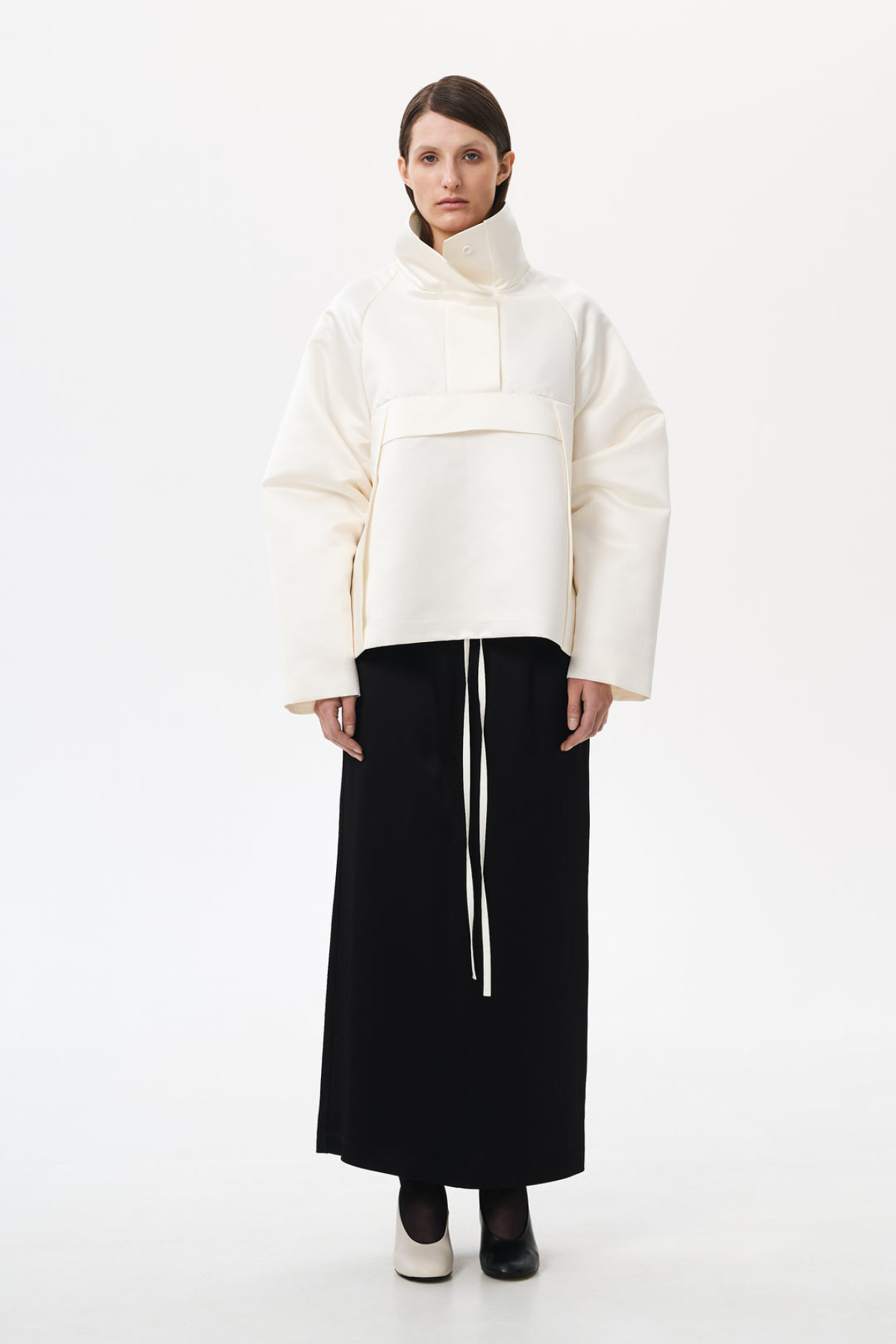 Поєднання складного крою, мінімалізму та структурованих фактур прекрасно втілюється в силуеті «кокон».