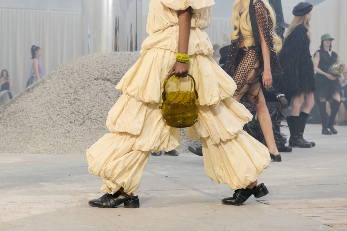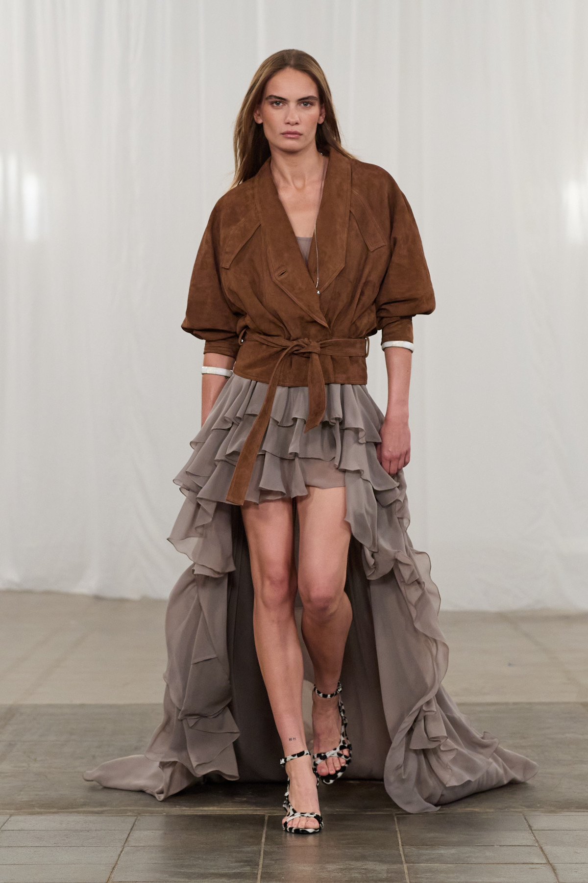 Від делікатної бахроми з тонких ниток до масивних шкіряних пасків, що м’яко рухаються й створюють об’ємний 3D-ефект під час ходи — фактурність цього сезону вражає. Herskind, Iamisigo та Freya Dalsjø представили особливо креативні інтерпретації цього прийому.