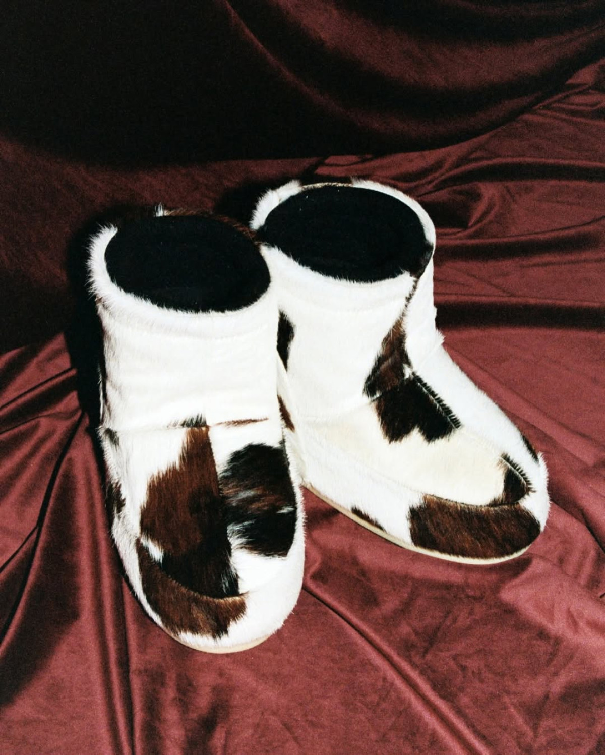 Мунбутси взимку 2026 — це короткі, округлі моделі з щільною підошвою та чітким об’ємом, які носять як міське взуття, а не лише для курортів. Найактуальніший варіант сезону — пари з анімалістичним принтом (зокрема, пcow print): вони виглядають більш виразно, ніж однотонні, але не перевантажують образ. Такий принт працює як нейтральний: він легко поєднується з чорним, молочним, сірим, коричневим і денімом. Саме тому ці мунбутси органічно комбінуються з oversize-пуховиками, вельветовими костюмами, прямими джинсами stovepipe та трикотажними сукнями. У списку модного взуття зими 2026 це один із найбільш практичних і водночас небанальних варіантів для щоденного гардероба.