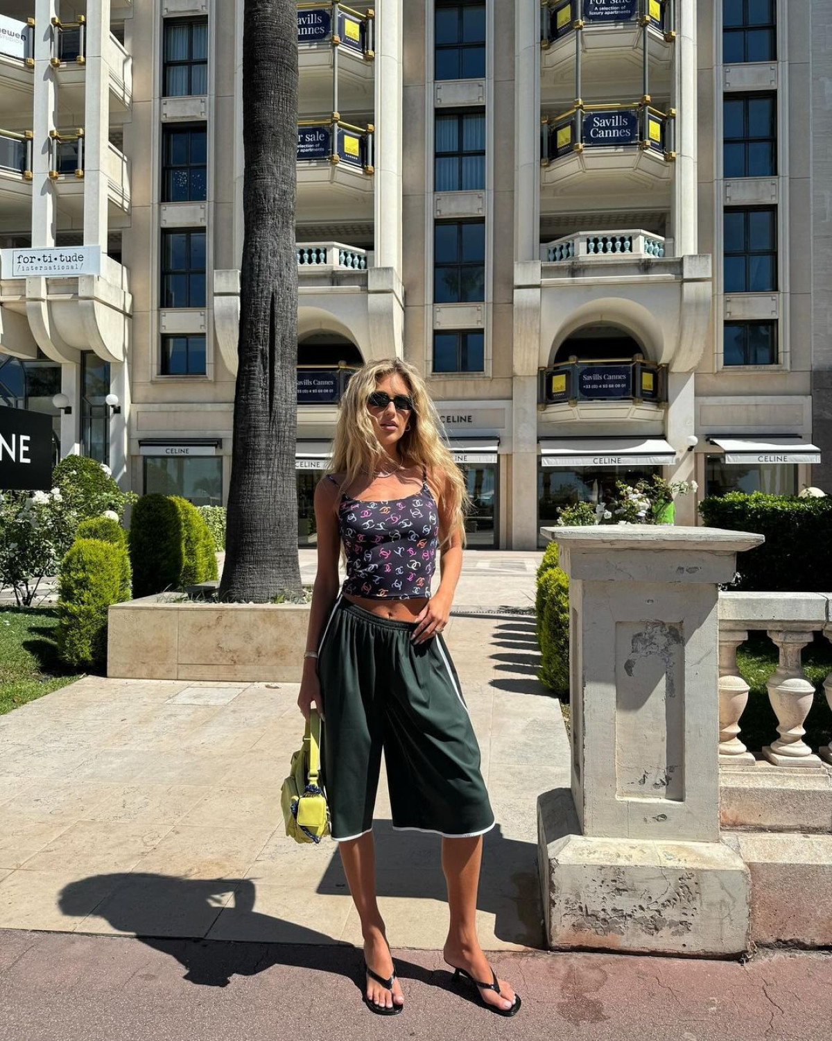 Серед головних фаворитів fashion-інфлюенсерок цього сезону — стилізації зі спортивним низом і вільними сорочками оверсайз. Скомбінуйте їх із сумкою в естетиці 90-х, сонцезахисними окулярами та кросівками або популярними сітчастими чи «желейними» балетками. Як варіант, до подібного образу можна вдягнути й об’ємний маскулінний жакет або, навпаки, більш приталену та жіночну модель. Із взуття тут у пригоді стануть в’єтнамки на плоскій підошві чи невисоких підборах і туфлі-човники.