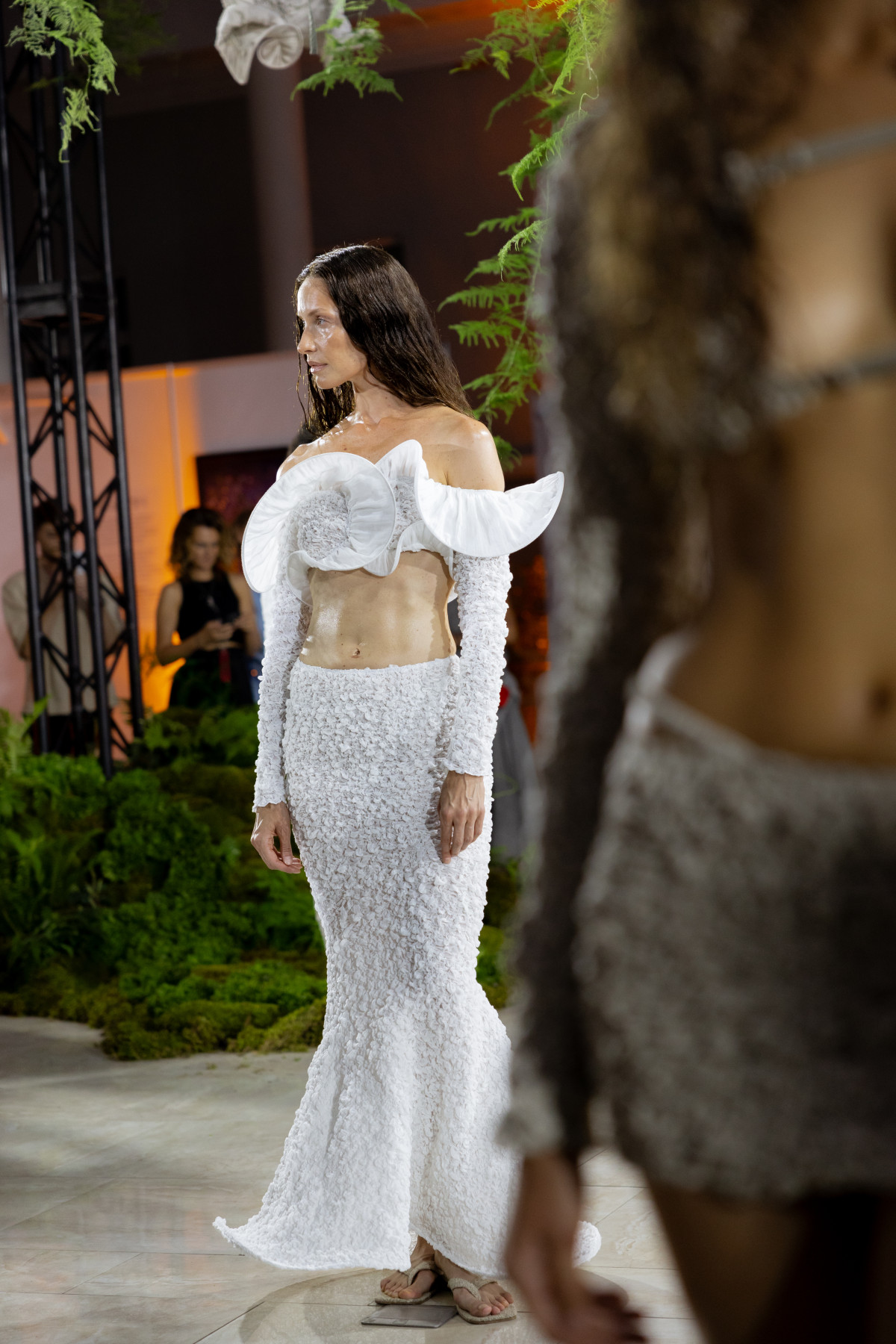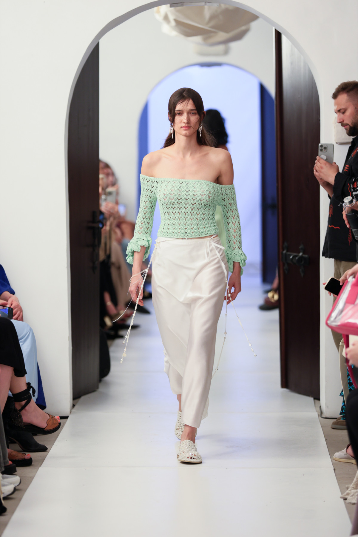 Дизайнери експериментують з технікою кроше, створюючи одяг в рамках свого стилю та ДНК: мінімалістичний топ від KSENIASCHNAIDER, сукня максі від бренду TONiA, пастельний топ і сукня від BOBKOVA.
