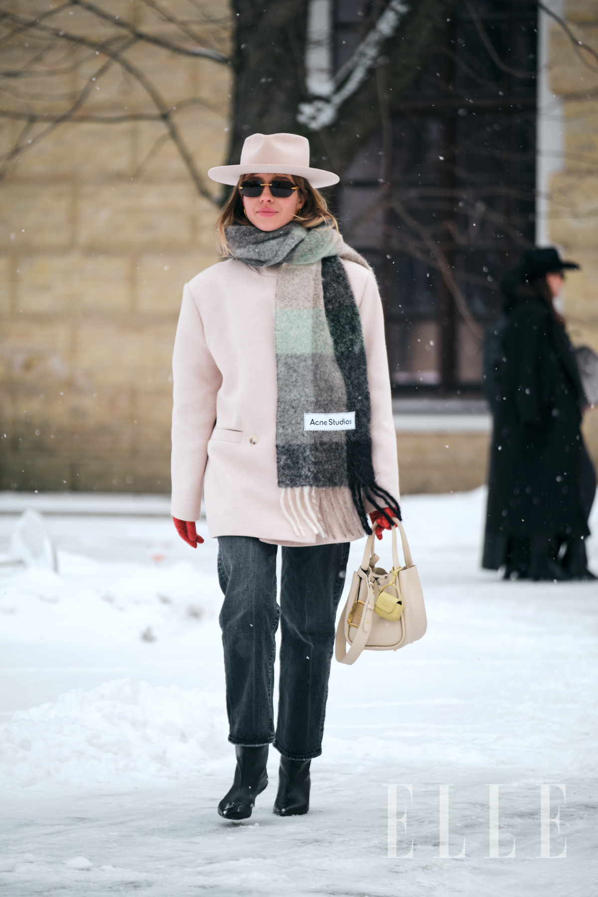 На вуличних подіумах панувало й розмаїття хусток — як шовкових з барвистими візерунками, так і утеплених вовняних чи пухових з наповнювачем, що неабияк рятують від морозної погоди. Їх fashion-зірки вдягали різними способами: як косинку, зав’язуючи на потилиці, або ж просто накидаючи на шию чи плечі.