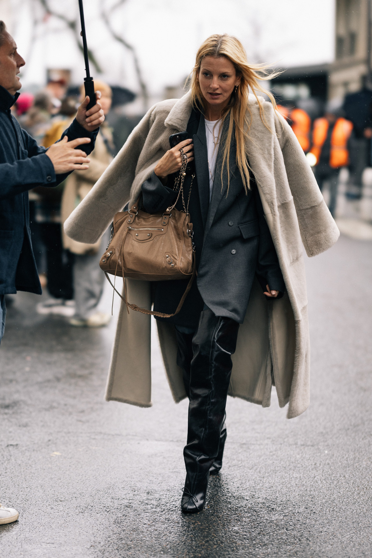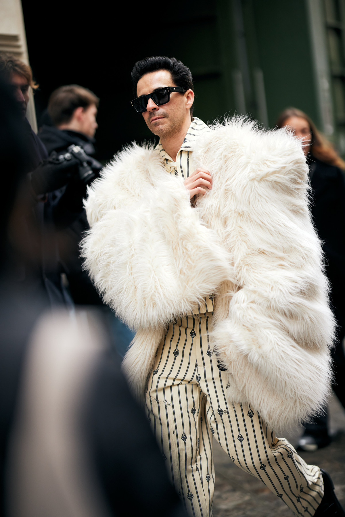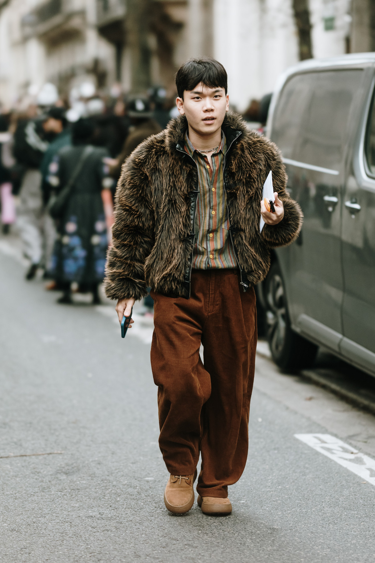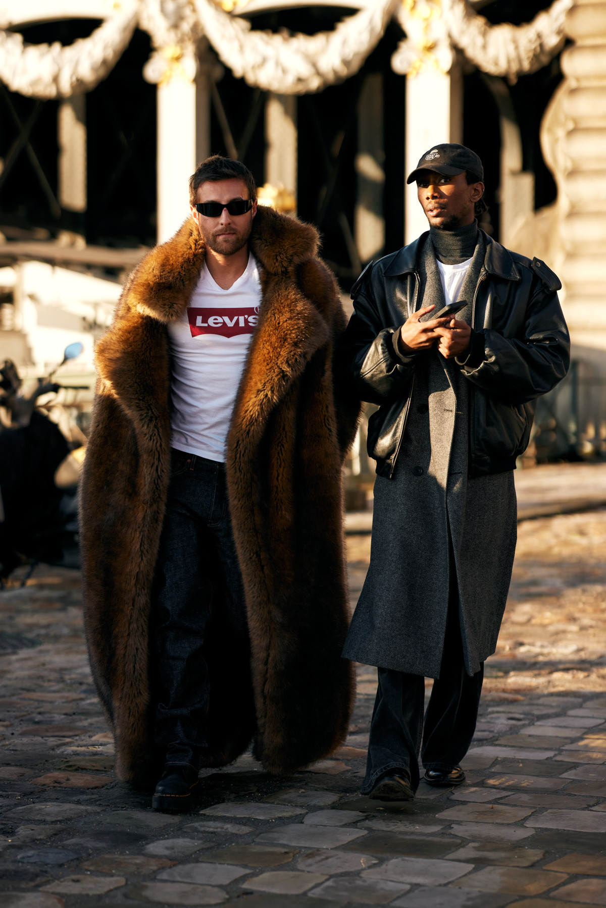 Також ми вкотре переконалися, що шуби — це не лише елемент жіночого гардероба. Паризькі модники поєднали цей верхній одяг зі спортивними костюмами, комплектами з вельветовими брюками й сорочками, а також із джинсами й мінімалістичними футболками.