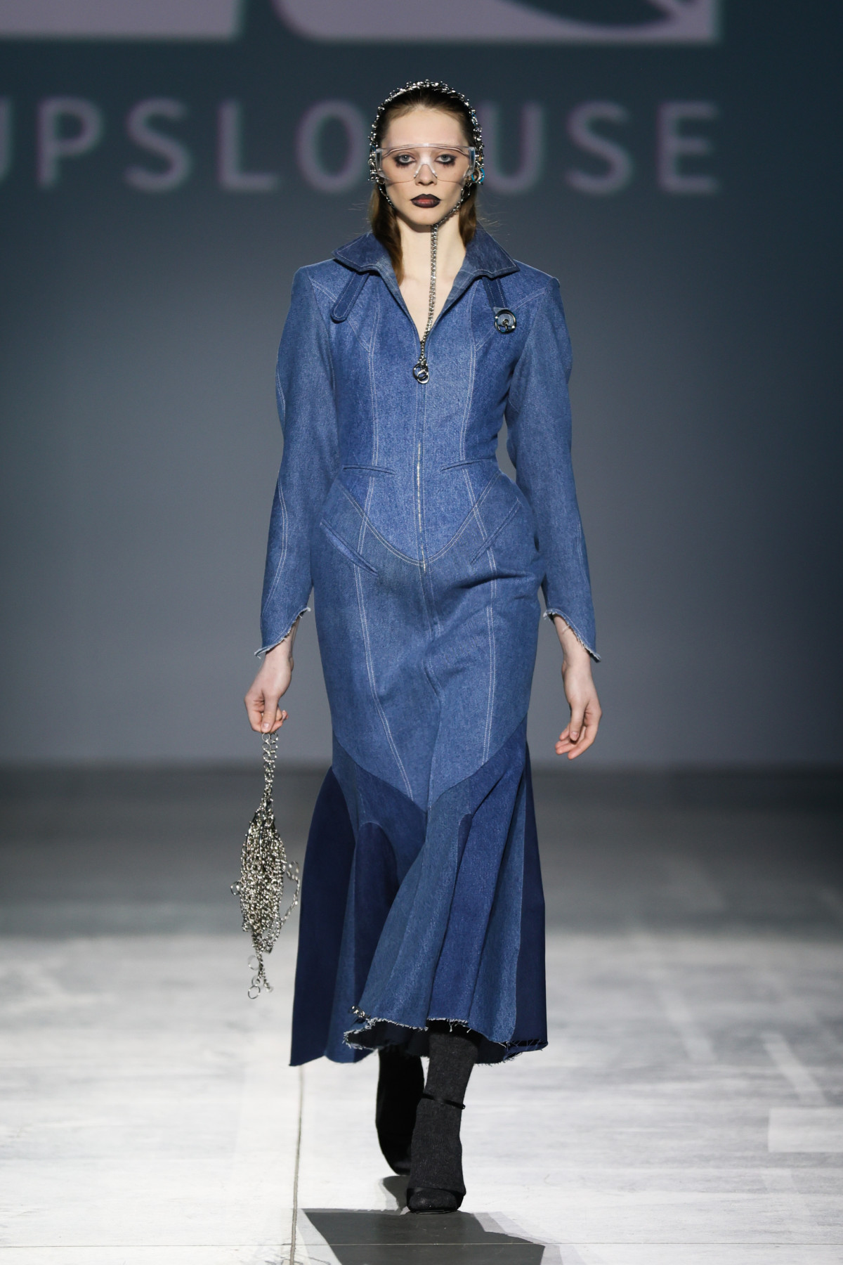Зокрема, цього сезону безліч брендів зробили акцент на джинсовому матеріалі. У колекції GURANDA ми побачили темні максісукні з широкими плечима й спідницями-bubble, що були доповнені золотими швами й блискучими деталями. Тоді ж як у бренду UPSLOWUSE, який цього року виграв премію від Kachorovska, натомість з’явилися силуетні моделі з переробленого деніму в різних тонах.