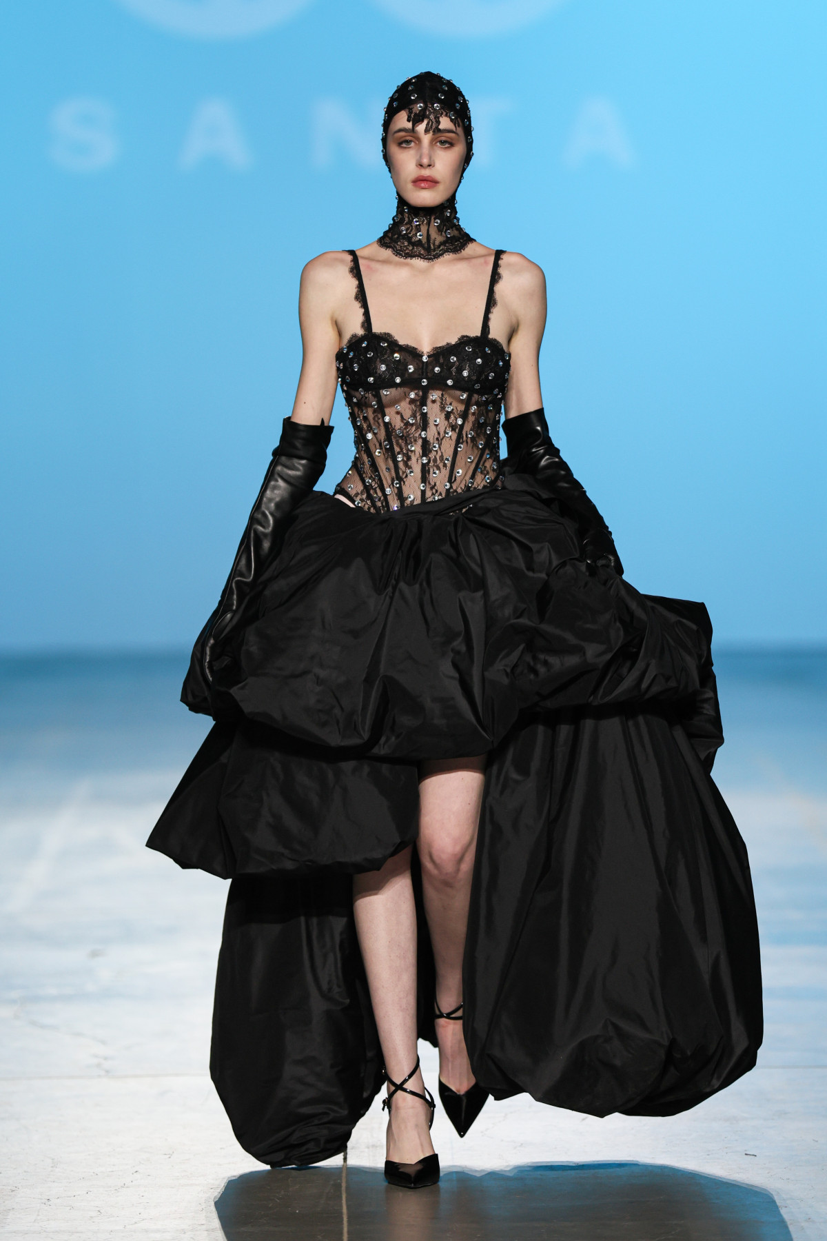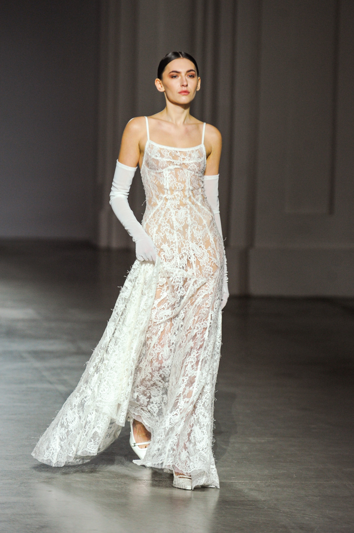 Окрім цього, дизайнерів захопила й любов до тонкого мережива. Наприклад, бренд SANTA презентував чорні сукні в стилі бохо, що рюшами спадали до низу, а CHUPRINA додав до своєї лінійки білі моделі, що радше нагадували ніжні весільні вбрання.