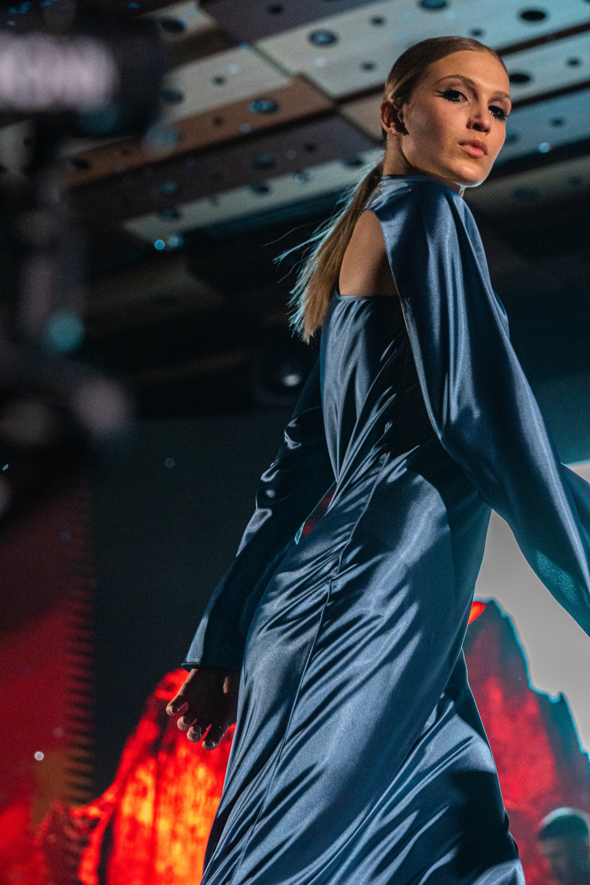 Зокрема, цього сезону безліч брендів зробили акцент на джинсовому матеріалі. У колекції GURANDA ми побачили темні максісукні з широкими плечима й спідницями-bubble, що були доповнені золотими швами й блискучими деталями. Тоді ж як у бренду UPSLOWUSE, який цього року виграв премію від Kachorovska, натомість з’явилися силуетні моделі з переробленого деніму в різних тонах.