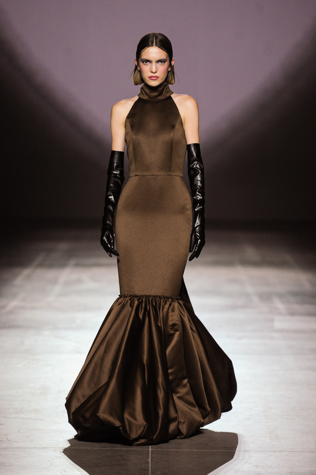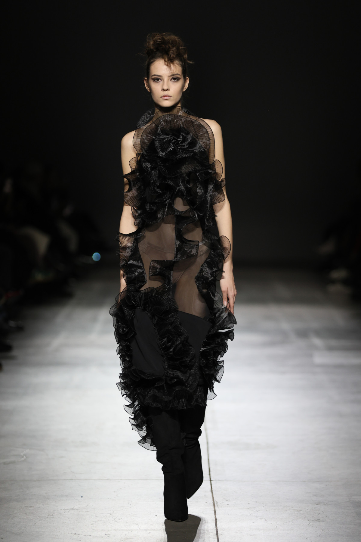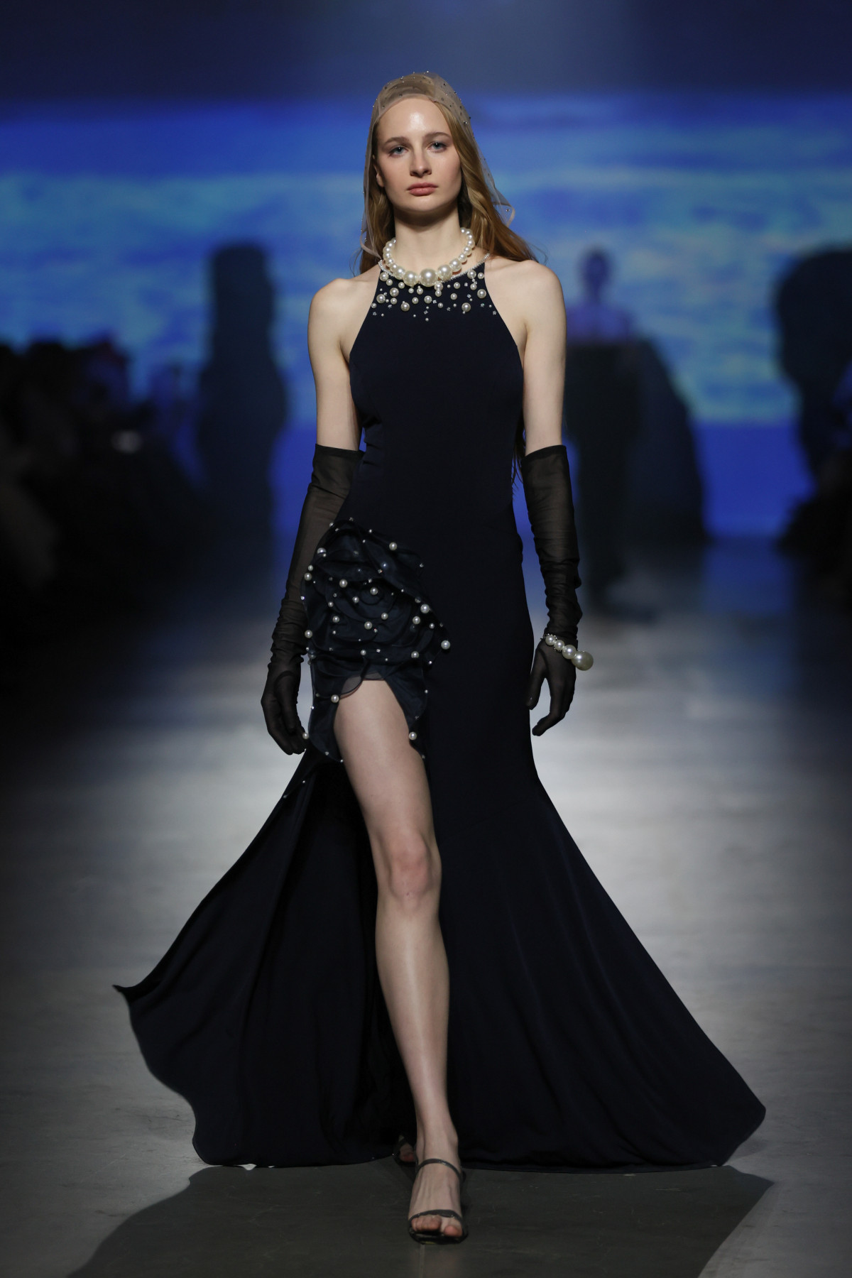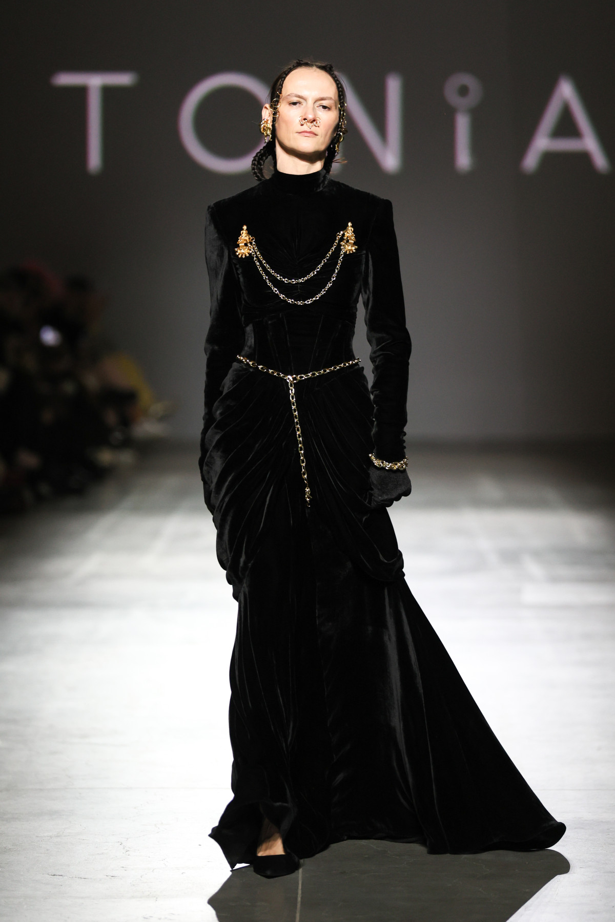 Також не забуваємо й про вишукані кутюрні варіанти, у яких основну увагу було приділено деталям. Так, у FROLOV з’явилися корсетні міні, доповнені вирізами у вигляді сердець, у TONiA — драматичні драпіровані з оксамиту, прикрашені золотими ланцюжками, а в Katerina Rutman — сукні, розшиті перлами та квітковими елементами з тюлю.