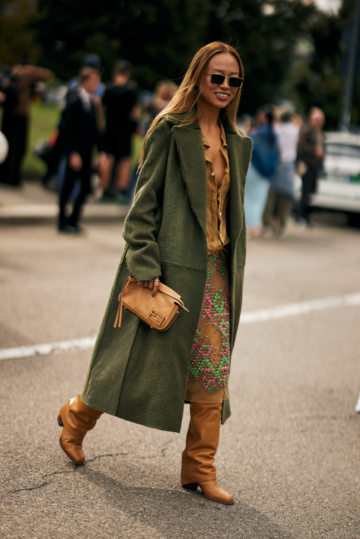 Так, однією з найулюбленіших модних формул дівчат стало поєднання «коричневий + блакитний». Стримане й не надто насичене, воно ідеально підійде як для офісу, так і для повсякденних прогулянок. Окрім цього, модниці особливо вподобали комбінацію із зеленими відтінками — від контрастного трав’яного до приглушеного хакі, — що їх ми часто можемо побачити в природі. Серед більш сміливих стилізацій — з яскравими червоними, бордовими та оранжевими кольорами.