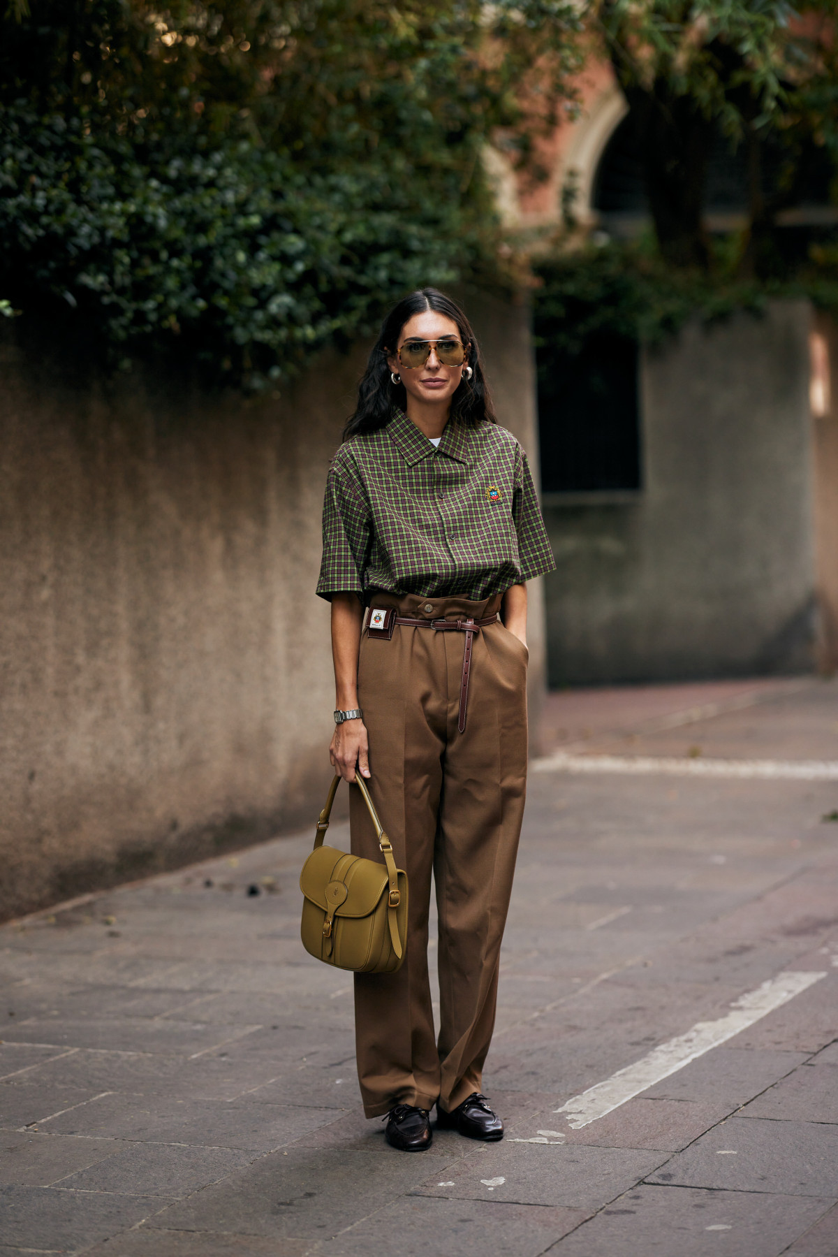 Так, однією з найулюбленіших модних формул дівчат стало поєднання «коричневий + блакитний». Стримане й не надто насичене, воно ідеально підійде як для офісу, так і для повсякденних прогулянок. Окрім цього, модниці особливо вподобали комбінацію із зеленими відтінками — від контрастного трав’яного до приглушеного хакі, — що їх ми часто можемо побачити в природі. Серед більш сміливих стилізацій — з яскравими червоними, бордовими та оранжевими кольорами.