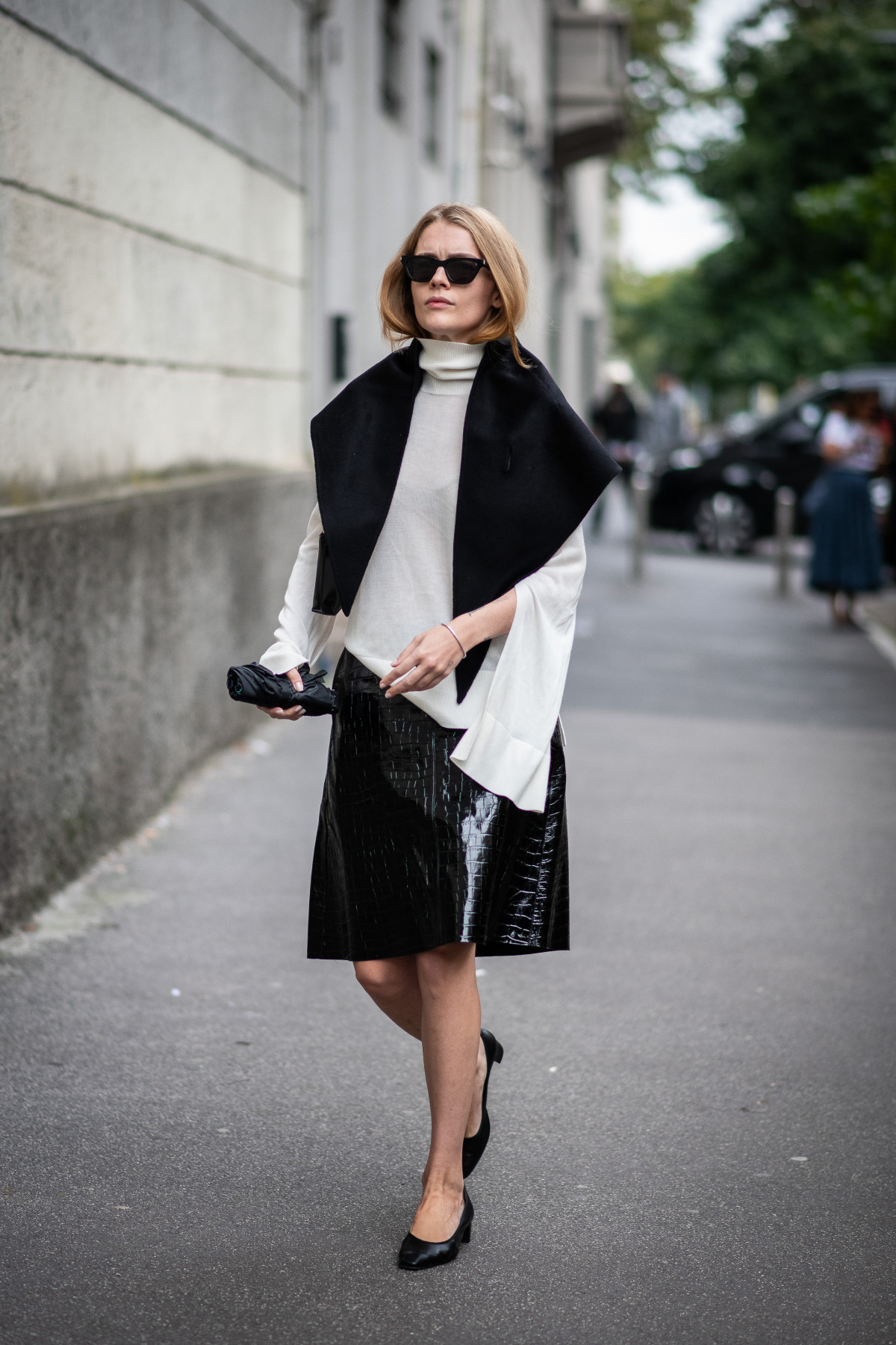 Як ми знаємо, стильний светр може розбавити практично будь-який низ. Утім цієї осені модниці все ж одноголосно заявили: потрібно обов’язково повторити комбінацію «светр + шкіряна спідниця». Така формула стане виграшною завдяки контрасту фактур. М’який трикотаж гармонійно переходитиме в грубу й дещо зухвалу шкіру, таким чином створюючи баланс між ніжністю та силою й бунтарством.