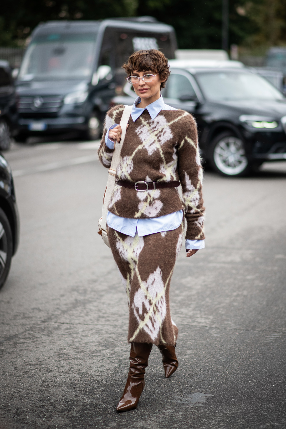 Класика багатошарових поєднань, яку вже кілька десятиліть активно використовують у своїх щоденних образах найстильніші дівчата. Формула проста: оберіть улюблену сорочку — або однотонну, або дещо цікавішу принтовану — і вдягніть поверх неї об’ємний светр. До того ж так, аби з-під в’язаної речі виглядав комірець, рукава чи поділ нижнього шару. Подібна комбінація чудово розбавить як образи до університету чи офісу, так і більш повсякденні стилізації для прогулянок.