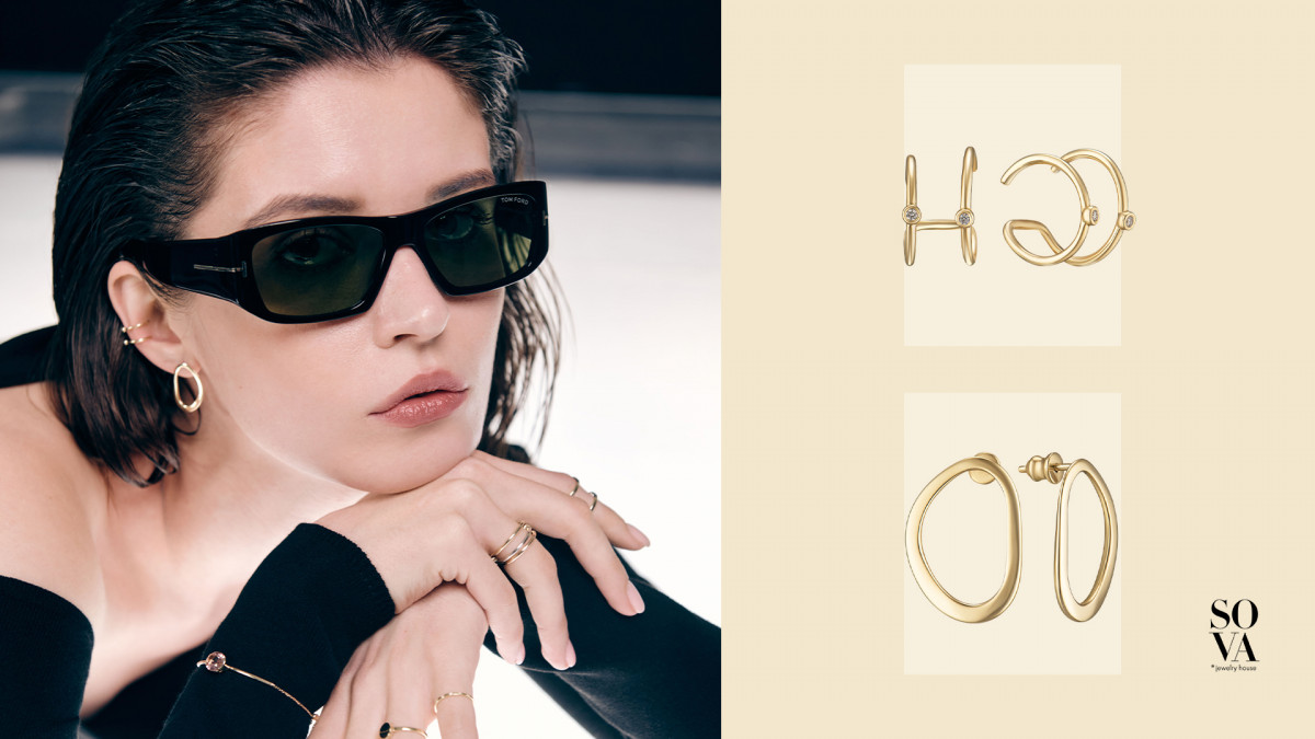 Сережки-кільця є своєрідною класикою, що не набридає. Придивіться до нетипових розмірів та форм подібних прикрас: це можуть бути екстра-великі кільця, кільця, декоровані камінням або ж лаконічні, що не змикаються, як із колекції SOVA. Такі сережки вдягаємо із будь-чим: від ультра-модного total-denim образу до лаконічної сліпдрес у поєднанні із оверсайз-піджаком і лоферами.