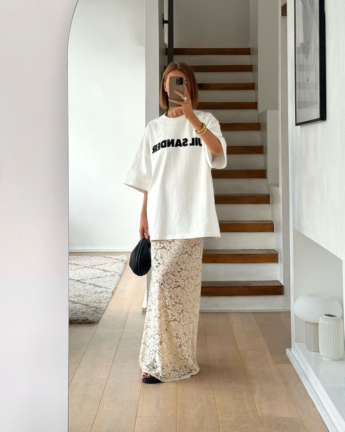 Навесні прозорі речі ми бачили в стилізаціях ледь не кожної модниці. У літню ж пору ми вкотре повертаємося до цих предметів гардероба і робимо акцент саме на спідницях. Хоча подібні елементи видаються аж надто відвертими й багато хто не розуміє, як правильно їх поєднати, запевняємо, що образи із прозорим низом можуть бути й стриманими та ніжними. Вдягніть під спідницю іншу непрозору модель або короткі шорти чи додайте наверх довгий жакет, футболку або сорочку оверсайз.