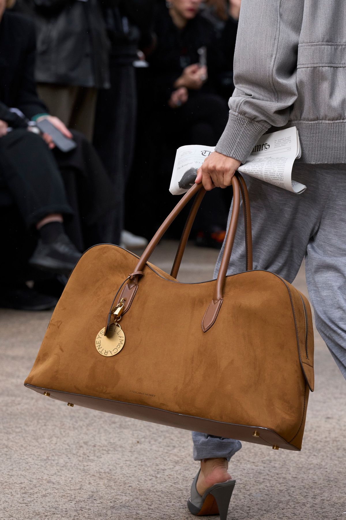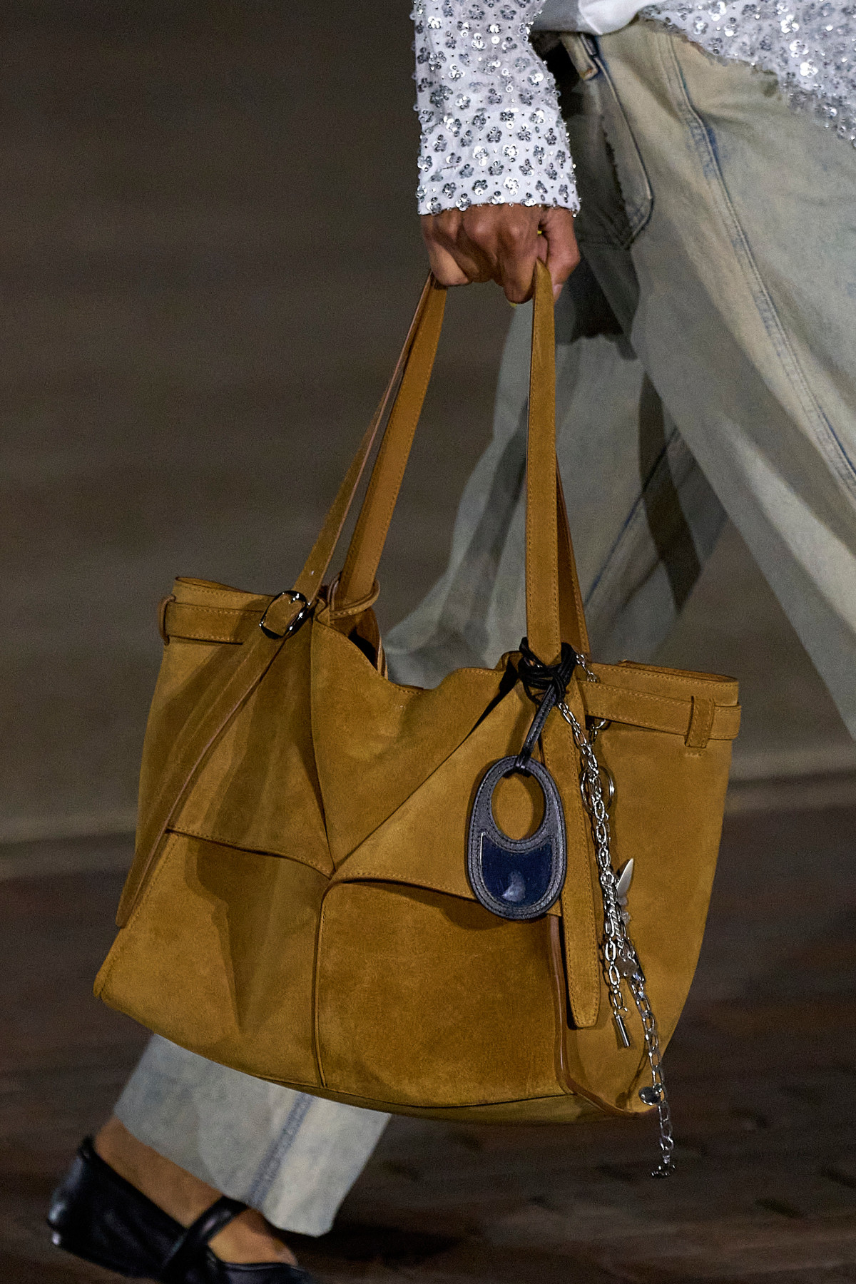 На показах брендів ми побачили найрізноманітніші варіації аксесуара — від невеликих прямокутних моделей, як у Stella McCartney та Emporio Armani, до масивних і містких, що їх запропонували Coperni, Miu Miu, Burberry та інші. Однак, окрім форми, зверніть увагу й на кольори. Обирайте трендовий коричневий, який уже став своєрідною базою, або ж зупиняйтеся на більш яскравих сумках — зелених, жовтуватих чи блакитних, що акцентно виділять будь-який образ.