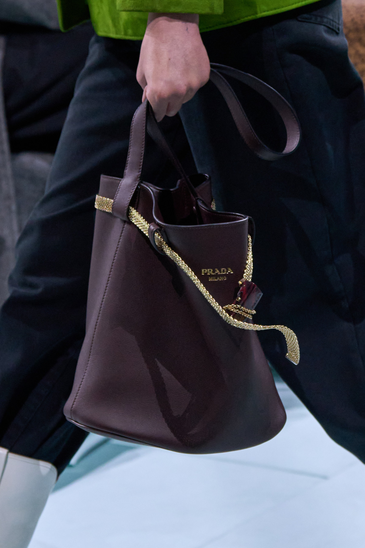 Придивіться до шкіряних моделей із золотими ланцюжками від Prada, варіантів у трендовому оливковому відтінку від Gucci або до мінімалістичних масивних від Tod’s.
